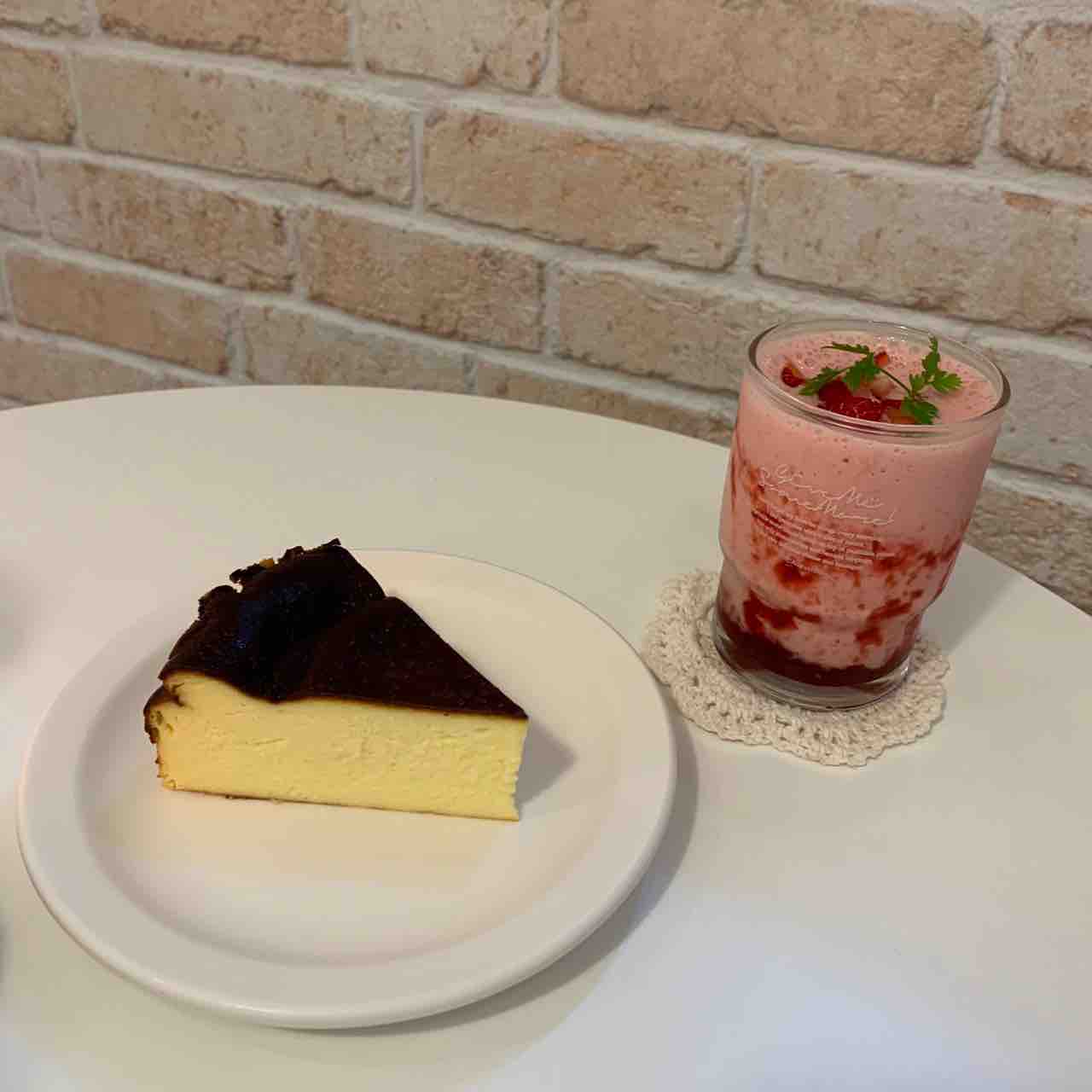 今回はバスクチーズケーキといちごスムージーを頼みました!