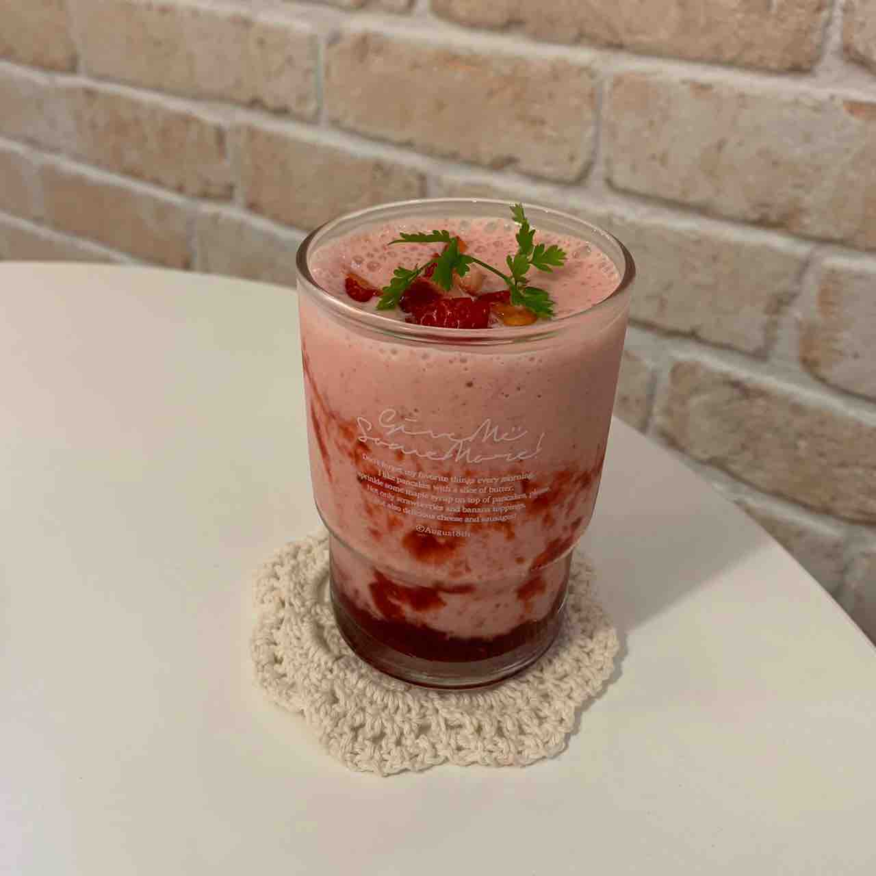 いちごスムージーはたくさんイチゴが入っていて、最初から最後まで美味しい飲み物でした。