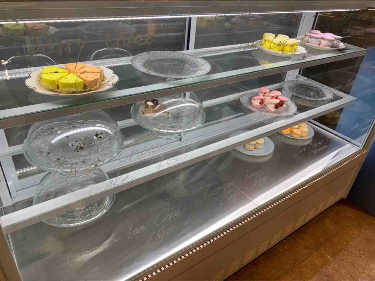 ショーケースの中には数種類のマカロンとケーキがありました。