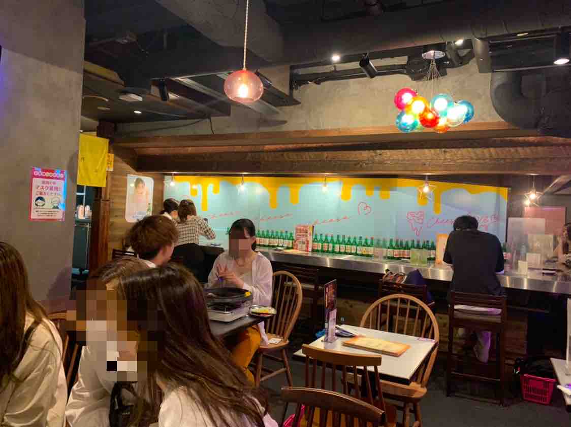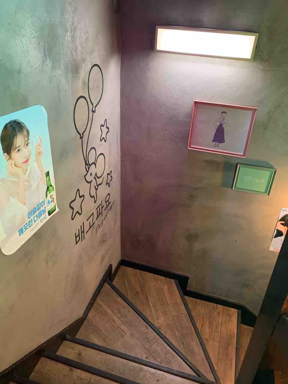 屋根から溶け出したチーズとチャミスルの自動販売機が目印です!この外見なら、迷うどころかついつい吸い込まれてしまいます。店内は1階と2階に分かれており今回はおにかいでお食事しました。