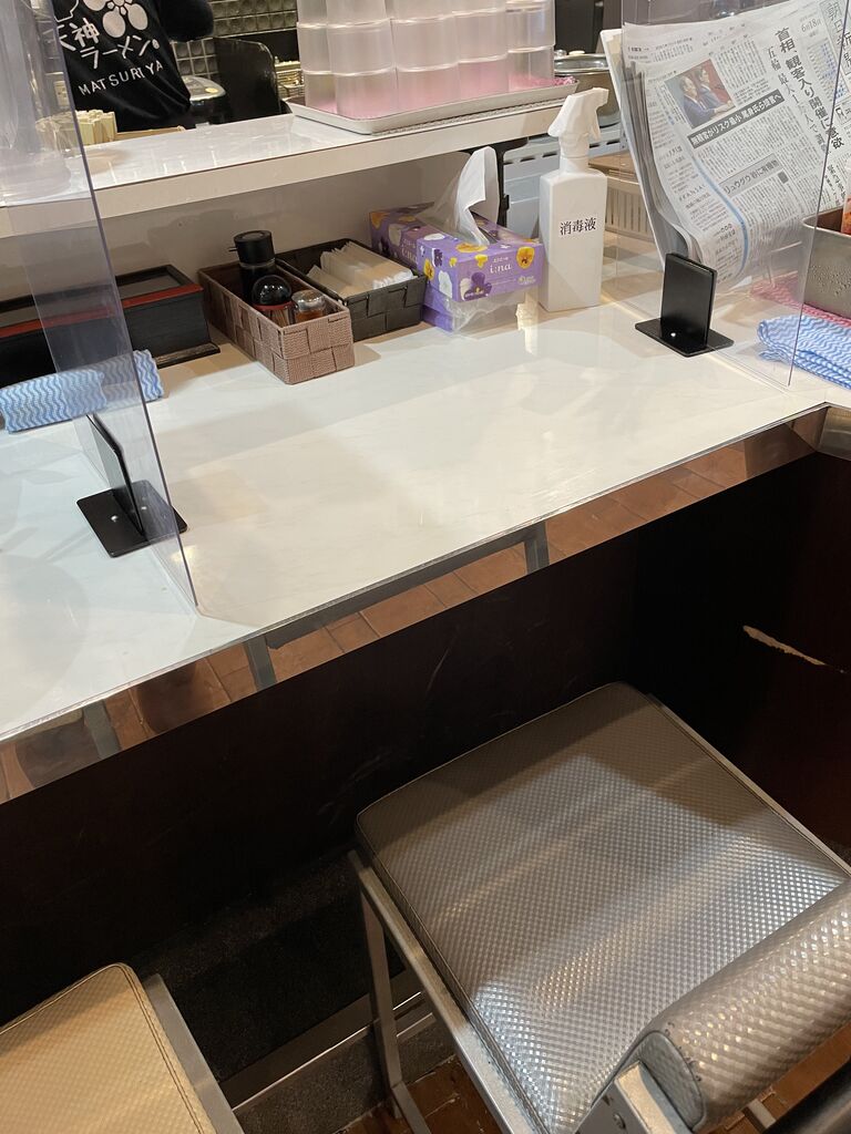 カウンター席はしっかりとパーテーションで仕切られています。