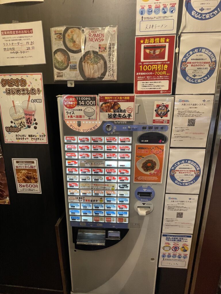 券売機で食券を購入するシステムで、お支払いは現金のみとなっています。