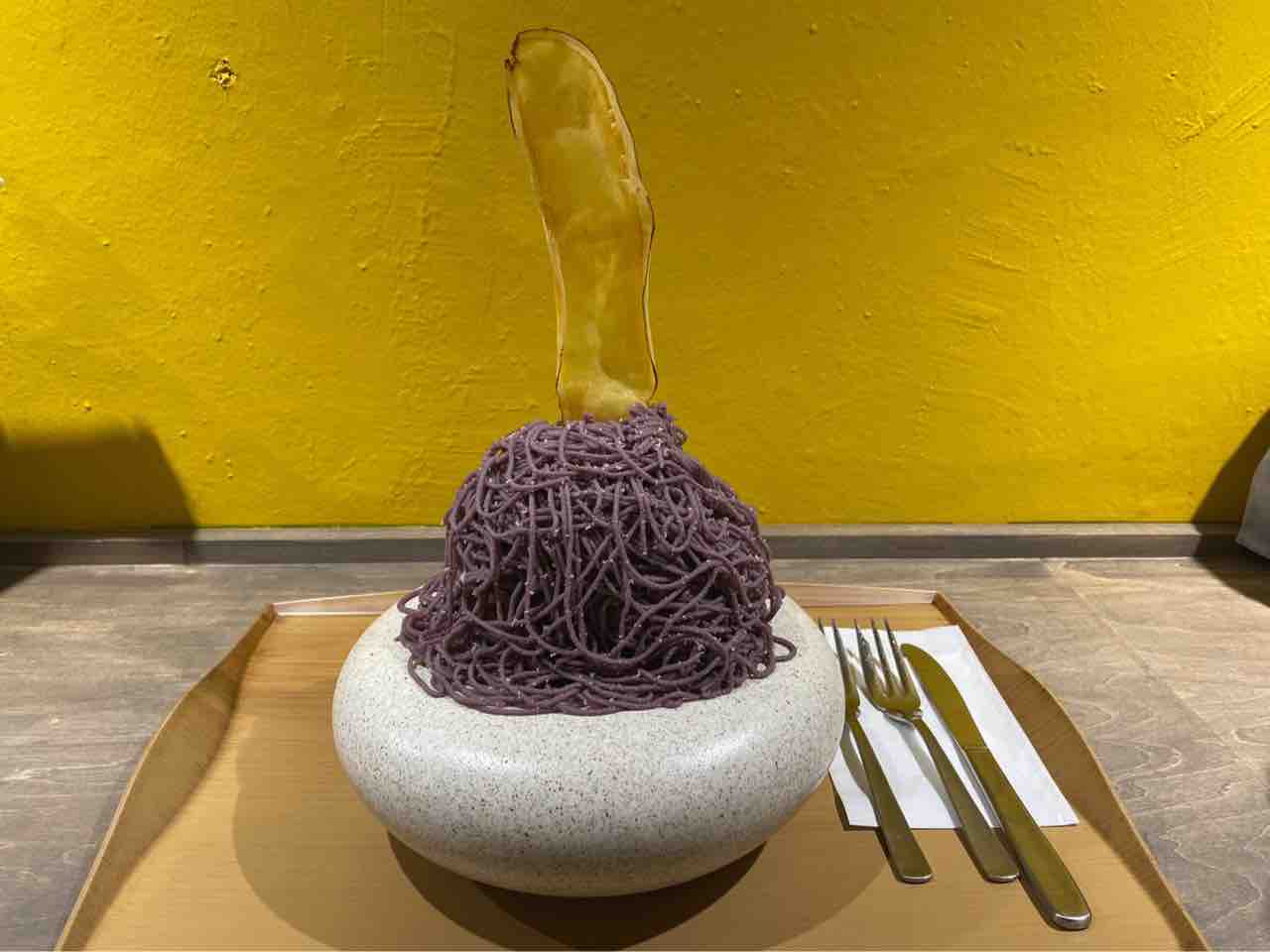 [フクムラサキイモンブラン...¥1300]そびえ立つさつまいものチップスがパリパリでしょっぱくてとてもいいアクセントになっていました!