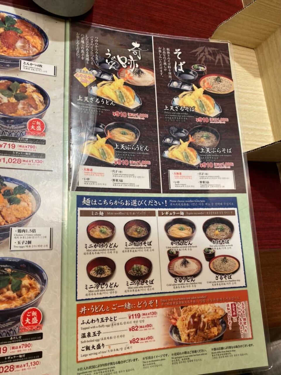 どんぶりだけでなく、そばやうどんのメニューも豊富です。