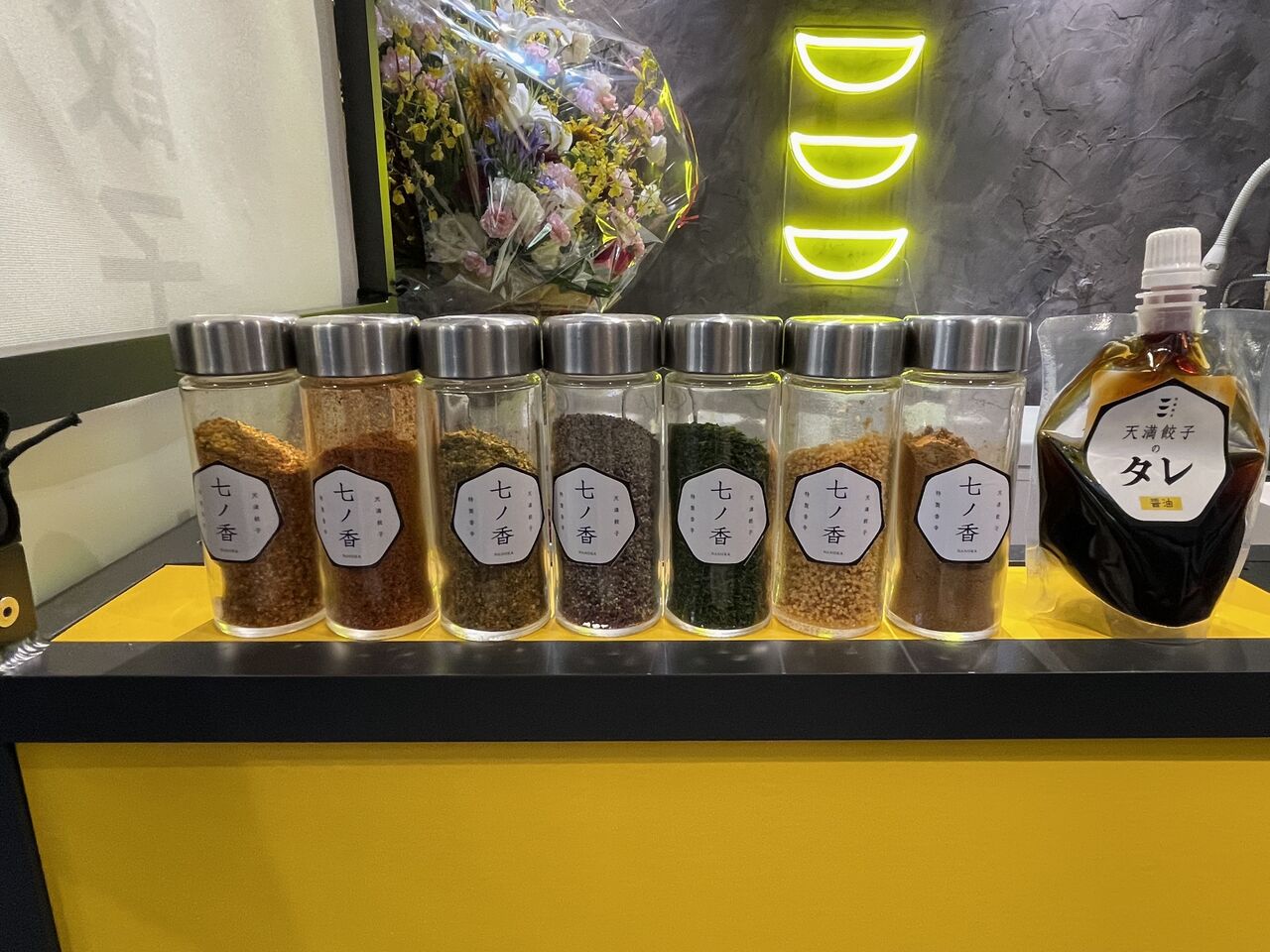 7種類のスパイスで構成された「七ノ香(380円)」と「餃子のタレ(380円)」も購入可能です。
