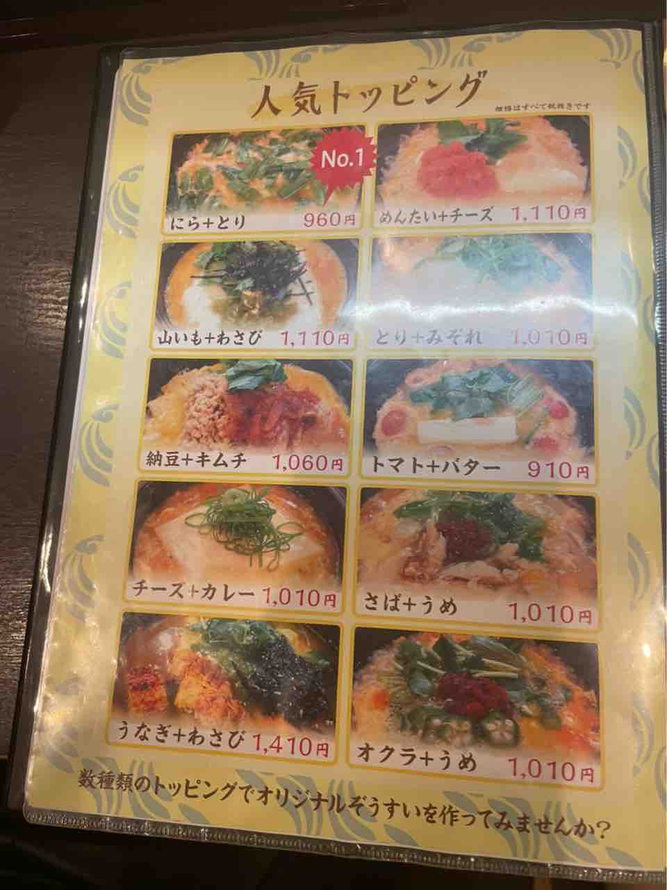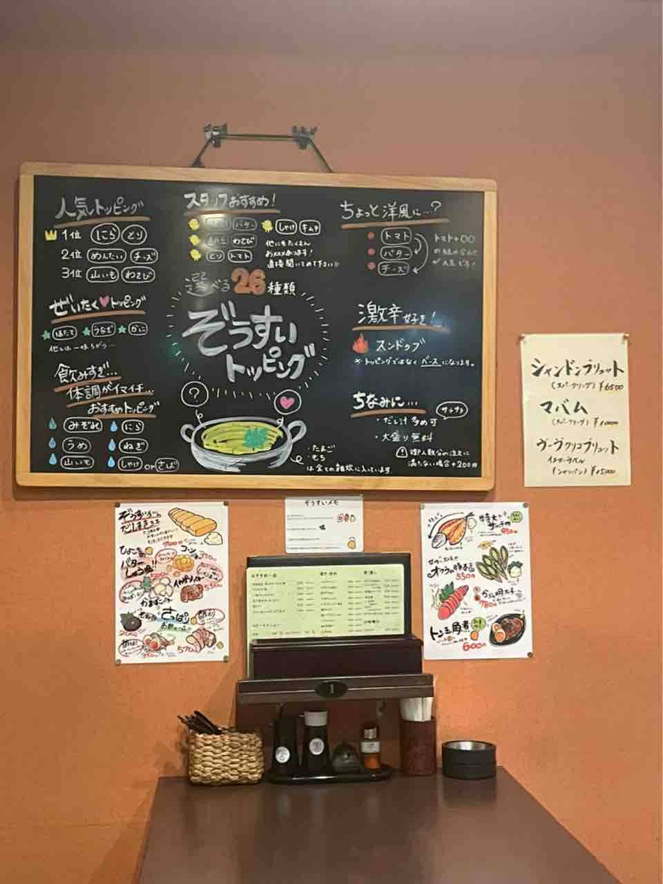 またぞうすい以外にも一品メニューも充実しており少し小腹が過ぎた時にも立ち寄りやすいですね。トッピングが多過ぎて迷ってしまうというそこのあなた。