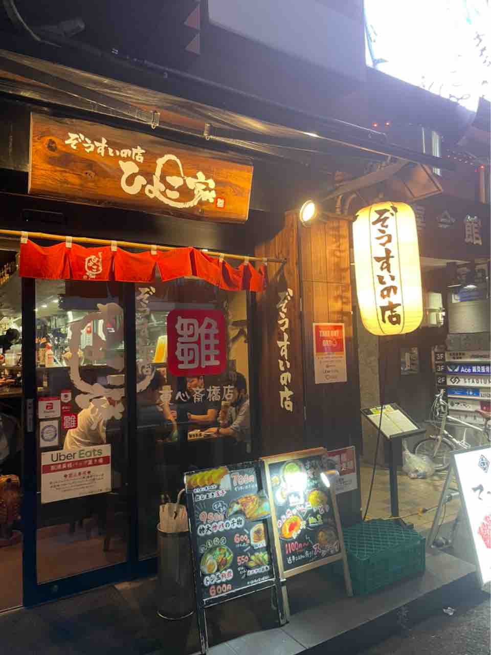 「ぞうすいの店」と書かれた明るい提灯があることで遠くからでも何屋さんかが一目でわかりますね。