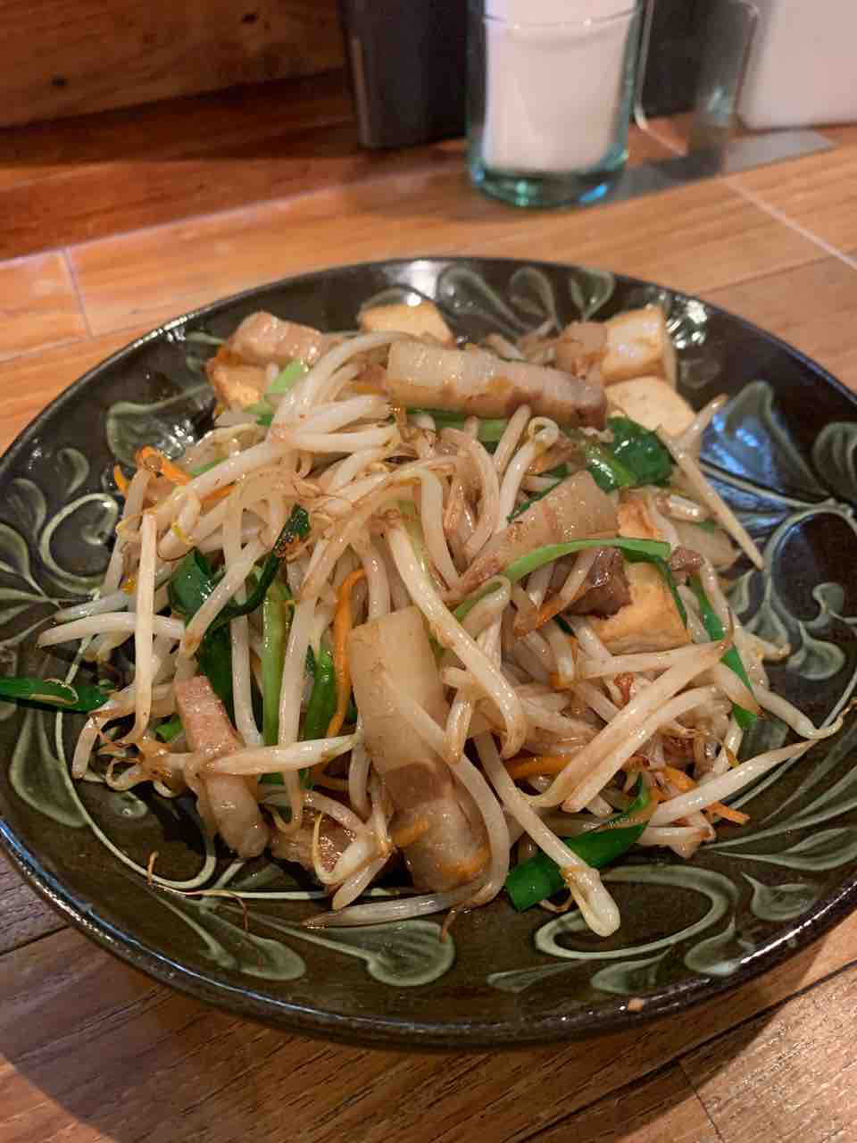 島豆腐と三枚豚、そして”マーミナ”の炒め物です。
