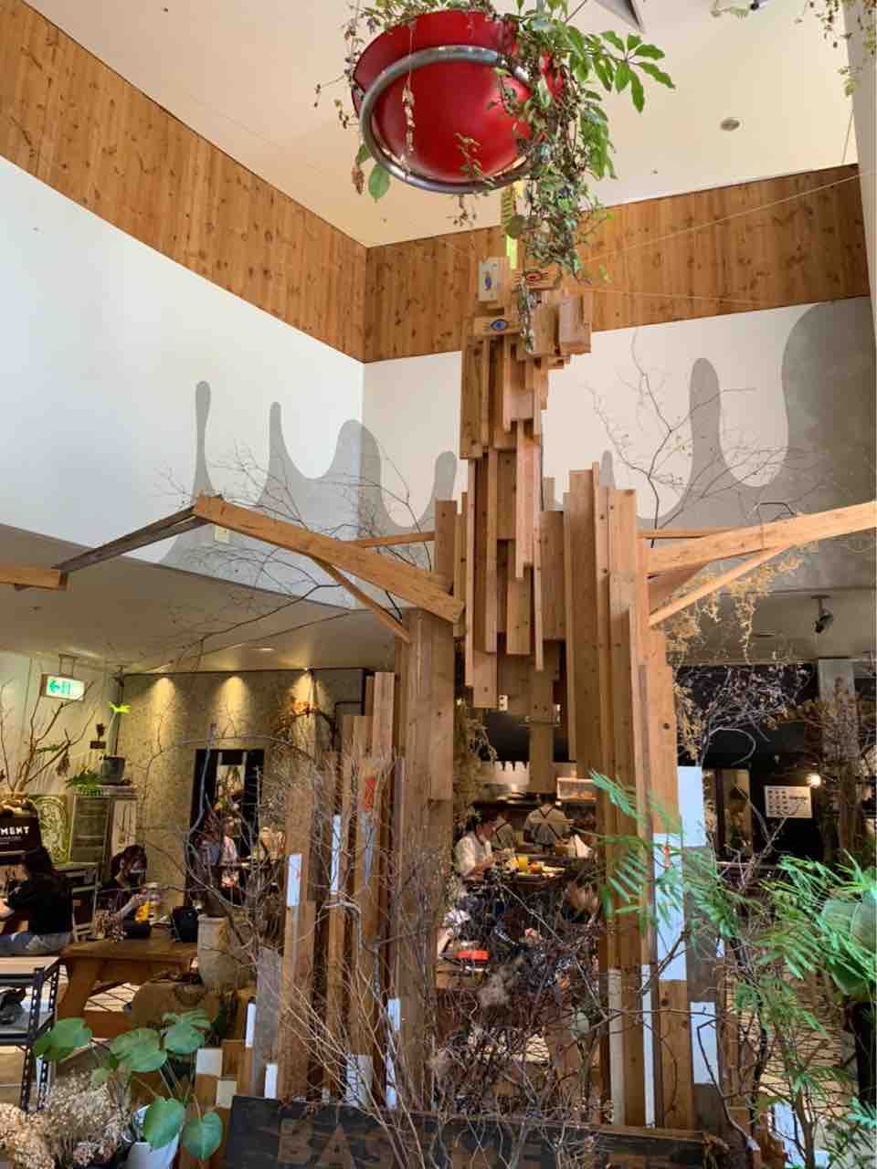 ブラックの看板と緑あふれる店内はナチュラルモダンな雰囲気です。