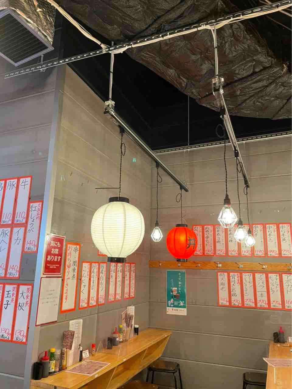 赤と白の可愛い提灯がつられてるお店です。