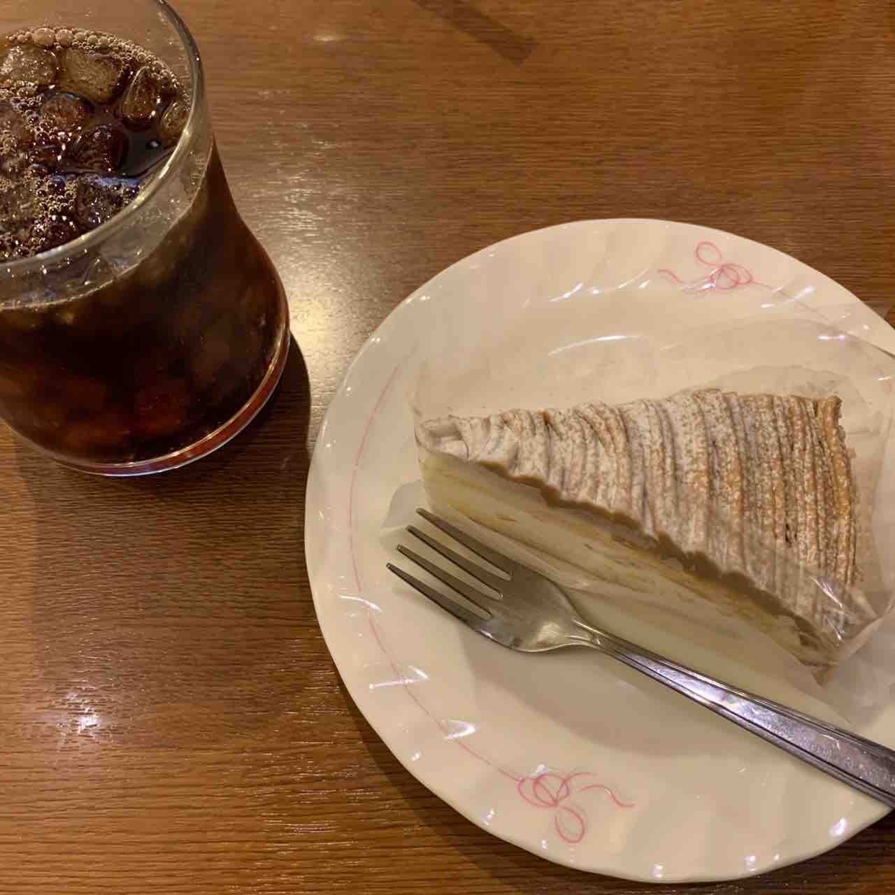 本日は昼食後でしたのでお店のケーキ&ドリンクセットを注文。アイスコーヒーとモンブランのケーキでお腹も満たされました。