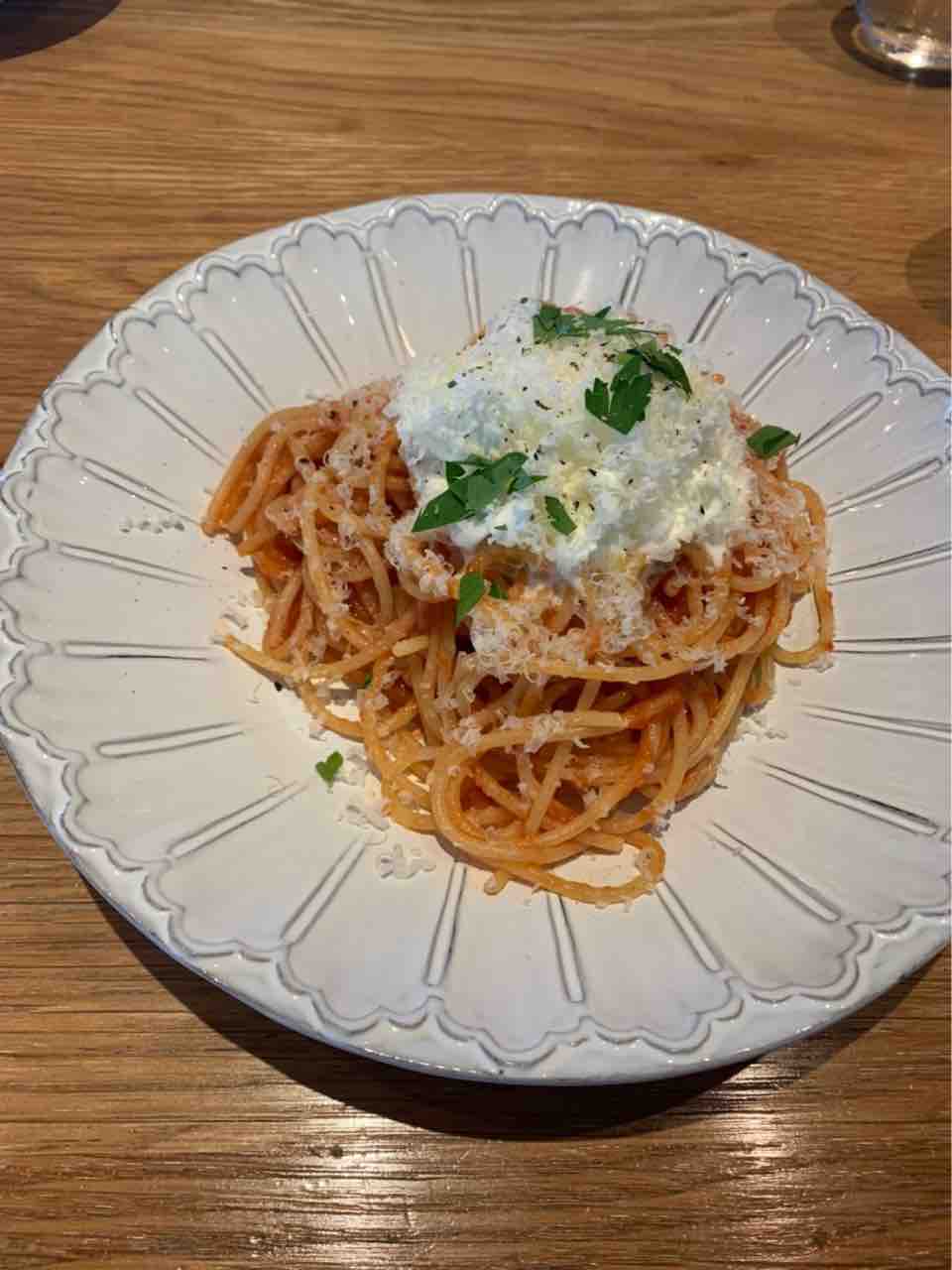 こちらは[スパゲティ ブーリア産トマトのサルサポモドーロ マスカルポーネとエスプーマ]です。