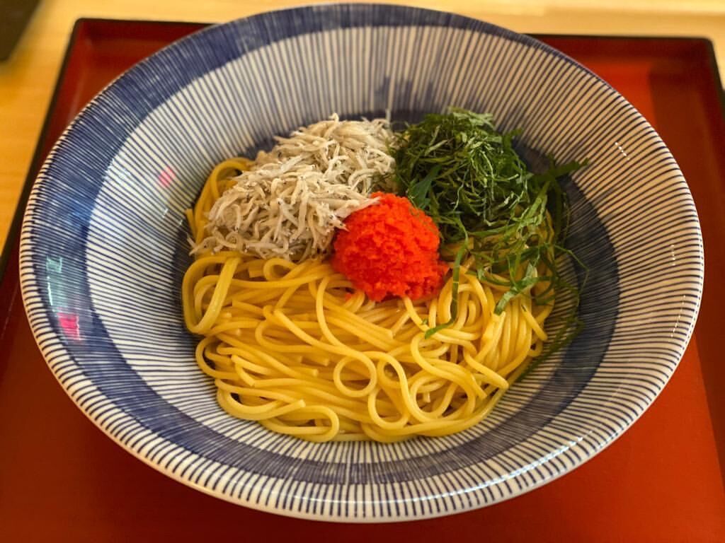 今回オーダーしたのは「たっぷりしらすと大葉の明太子スパゲッティ(1050円)」です。
