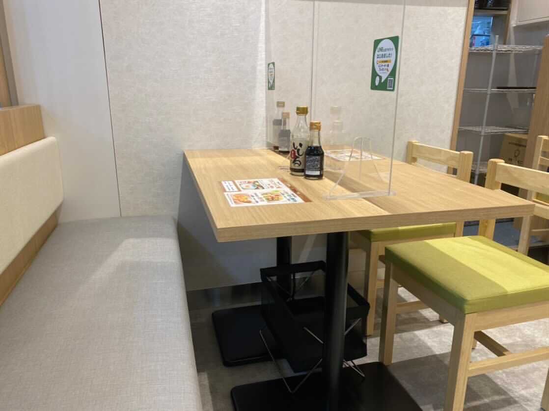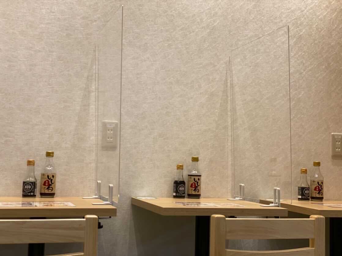 複数人掛けのテーブルもそれぞれを分割する形でパーテーションが設置されており、