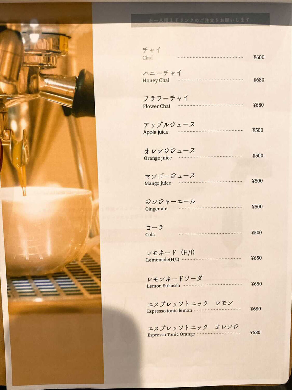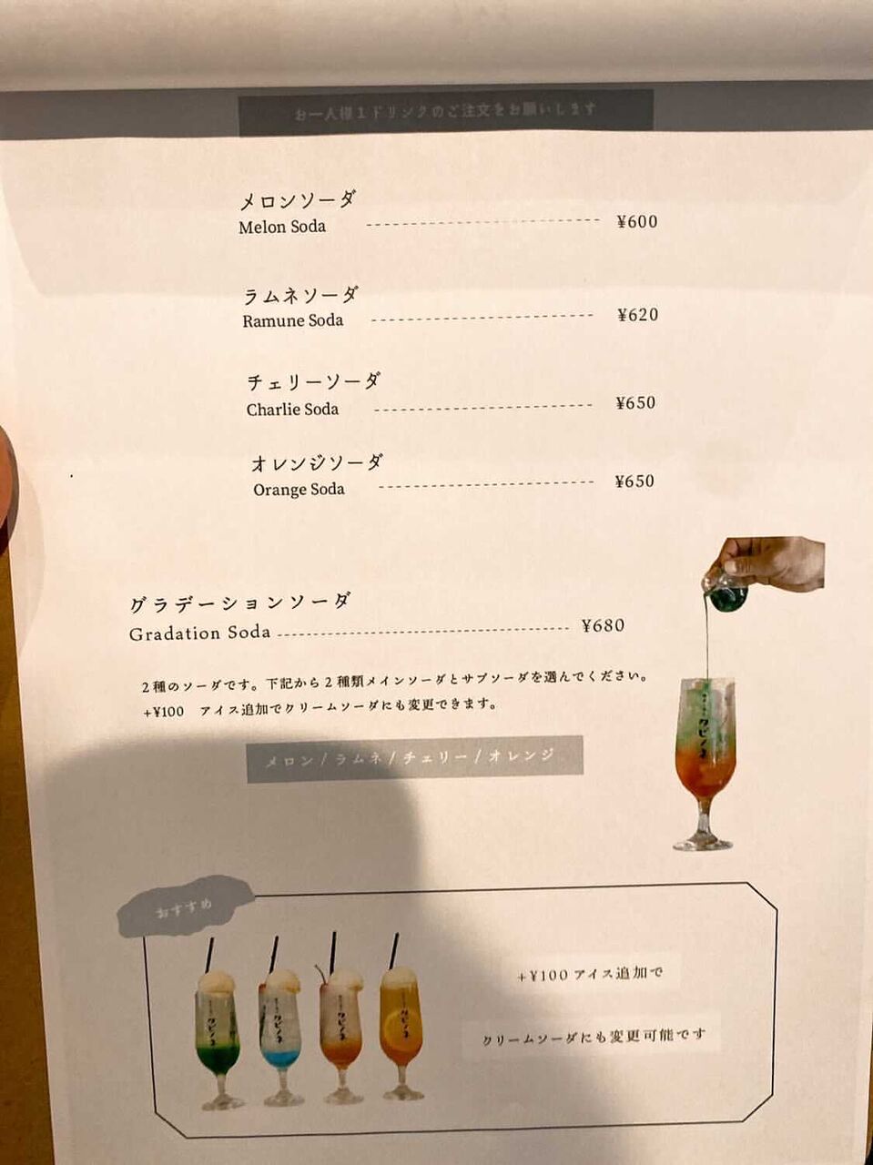 お店はワンドリンク、ワンオーダー制です。