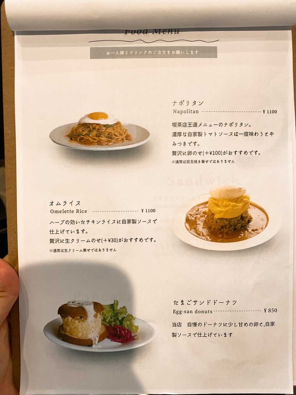 オムライスやトーストなどのフードメニュー