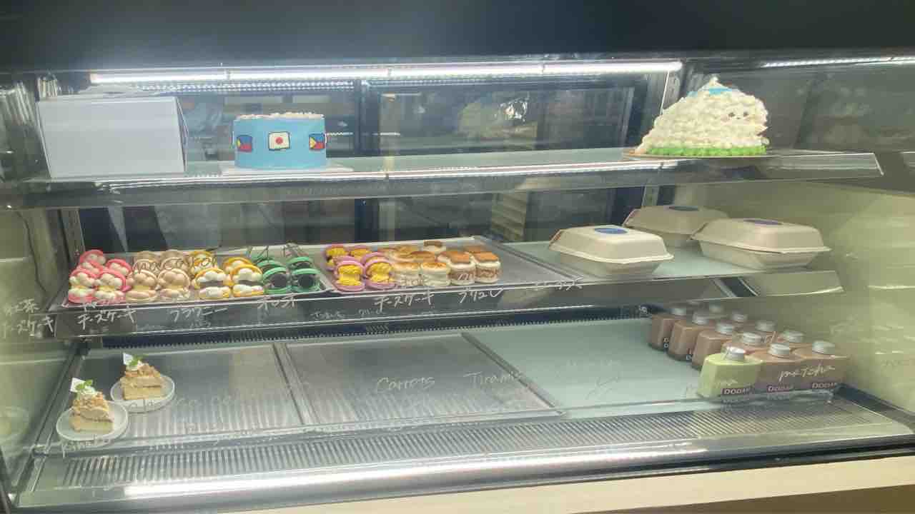 入り口をまっすぐ進むとデザートがたくさん並んだショーウィンドウがあります。
