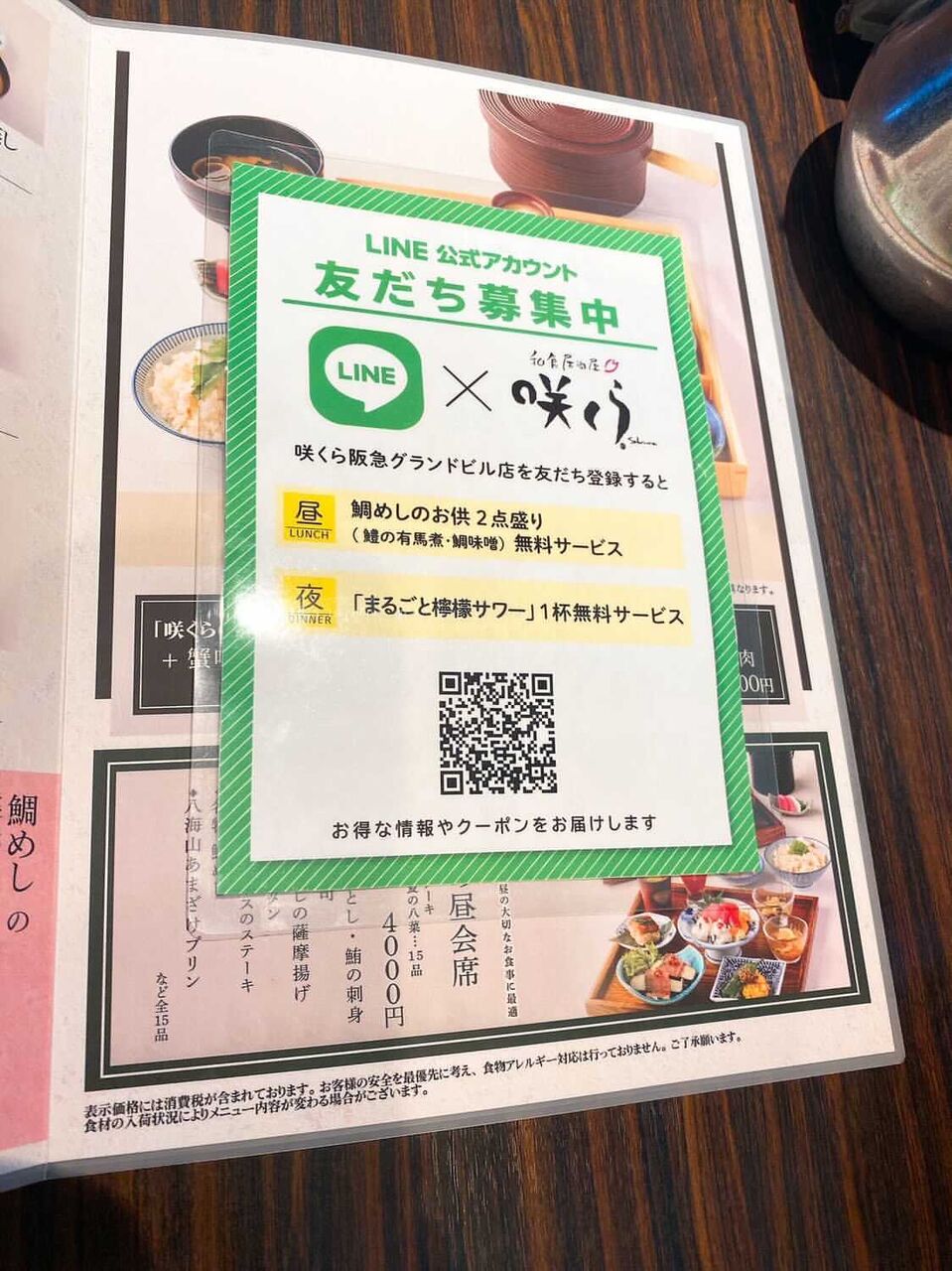 お店の公式ラインを友達追加すると、鯛めしのお供が2点サービスになります。