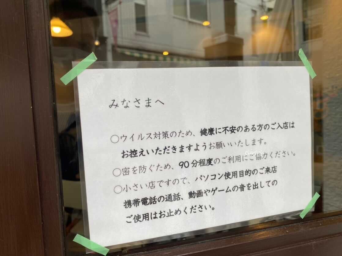 お店の入り口には、コロナ対策関連のお客様へのメッセージがあります。