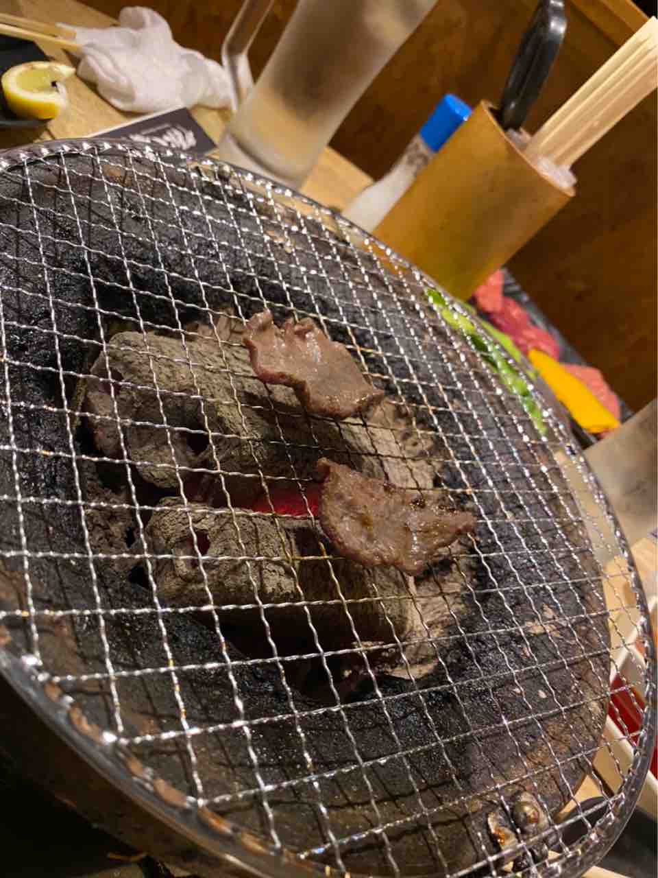 雰囲気のある焼肉やで網を囲みながら旨い牛タンをいただく