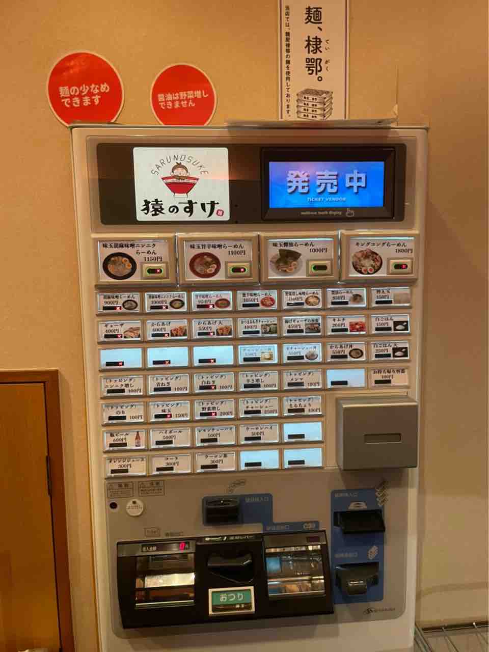 そして、店内は食券形式です。メニューはこちら↓