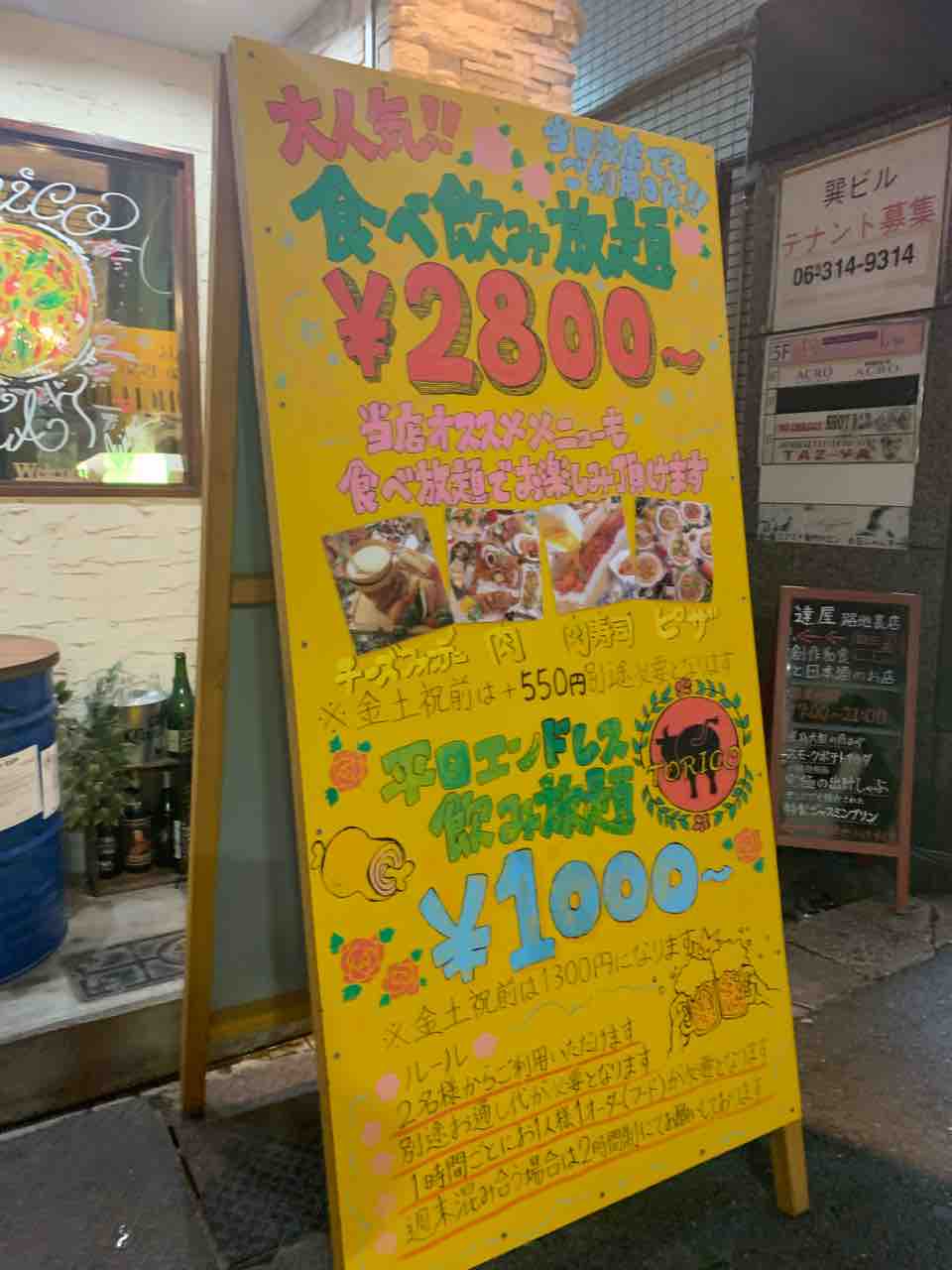 お得な食べ飲み放題コースや、飲み放題の鮮やかな黄色いメニューも