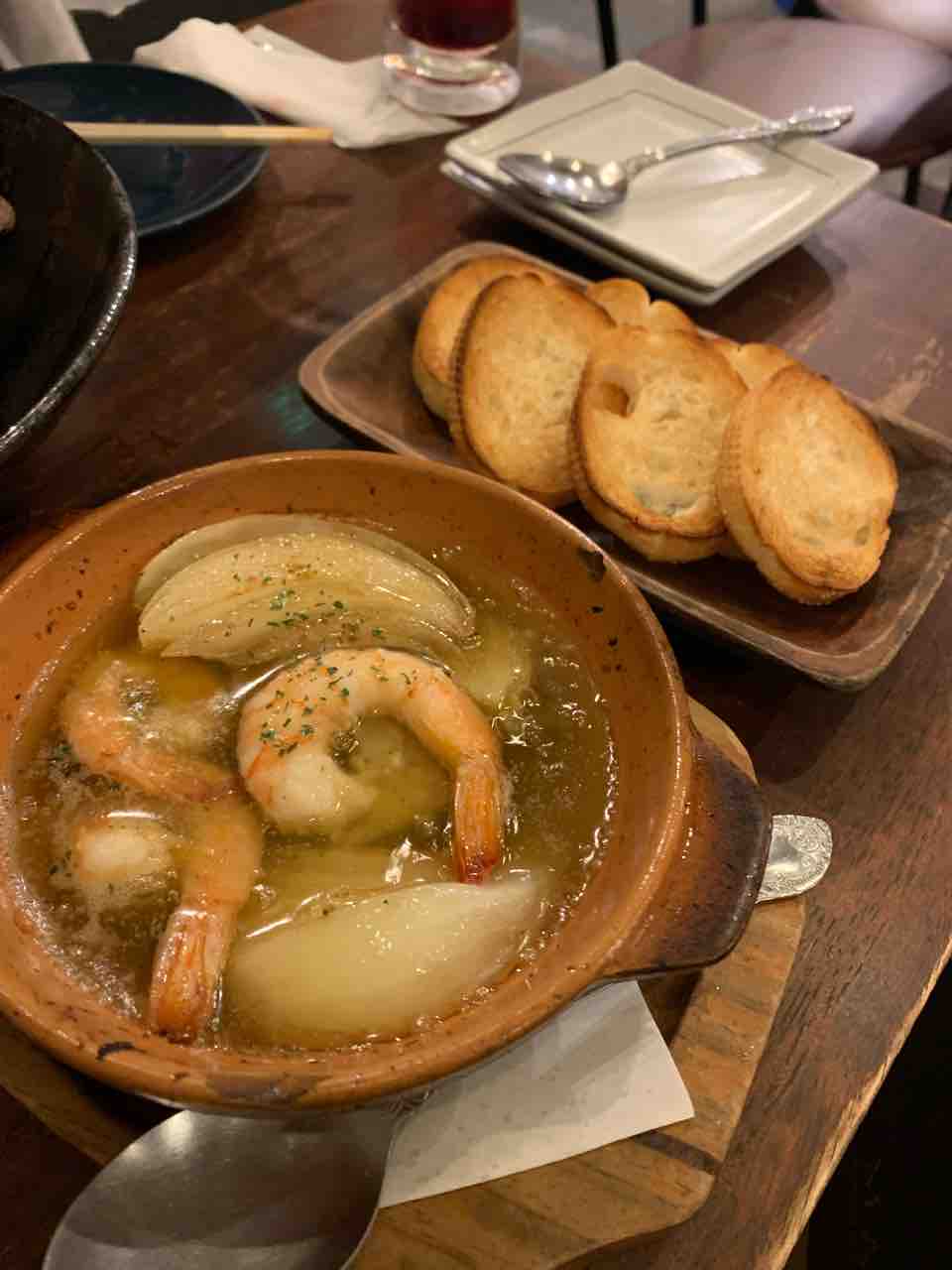 バゲッドもついてきて、ニンニクの効いたオイルにディップするのは言わずもがな美味しい!