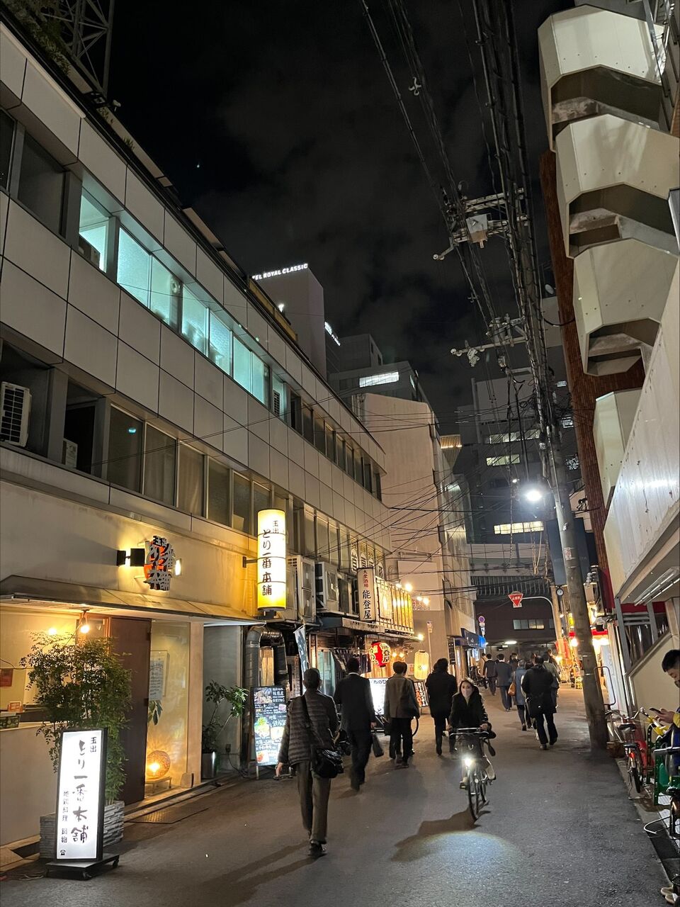 夜に散策していたので、周りが暗くなっており他の居酒屋はお客さんでいっぱい。