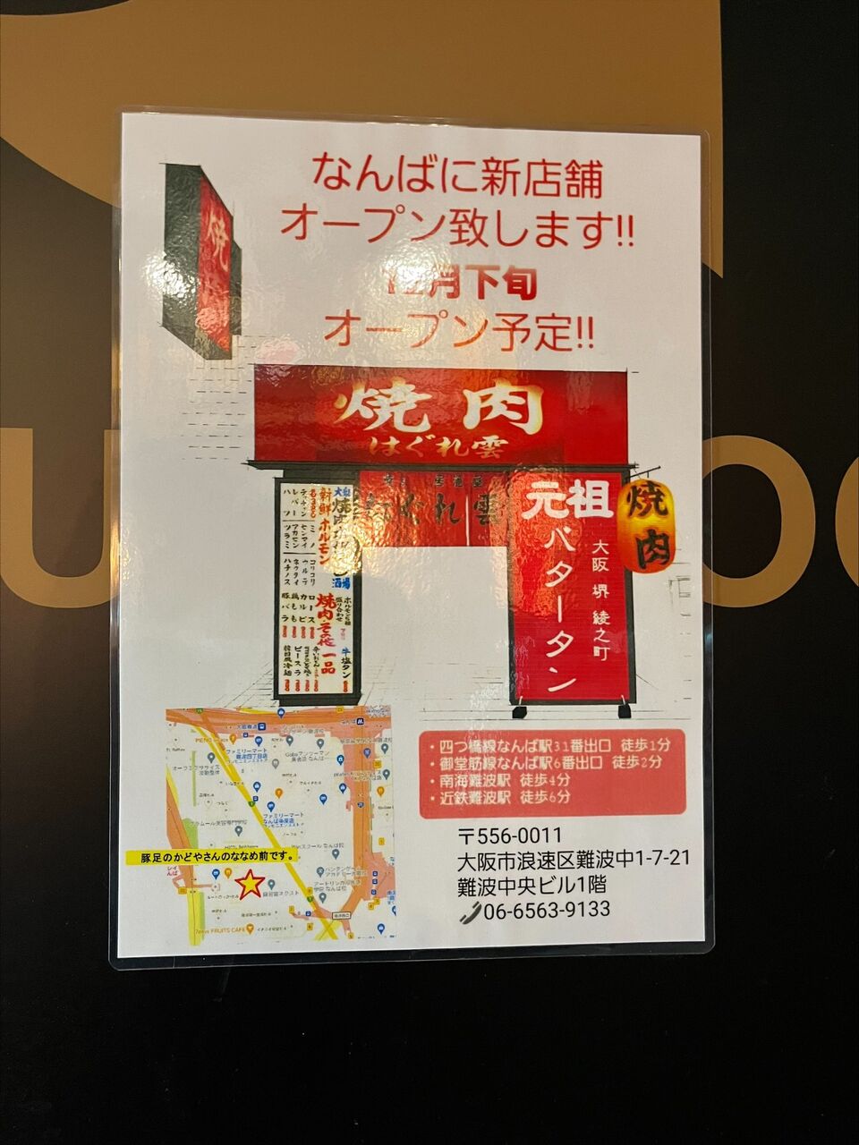 四つ橋線なんば駅から南海難波駅に向かい歩いて行く最中、飲食店の激戦区であるなんばエリアで『焼肉 はぐれ雲』がオープンするとの噂を聞きつけ現場へ直行!