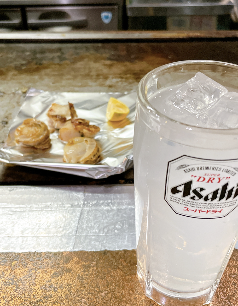 「お好み焼き・ホタテバター・レモン酎ハイ2杯・ハイボール1杯」で