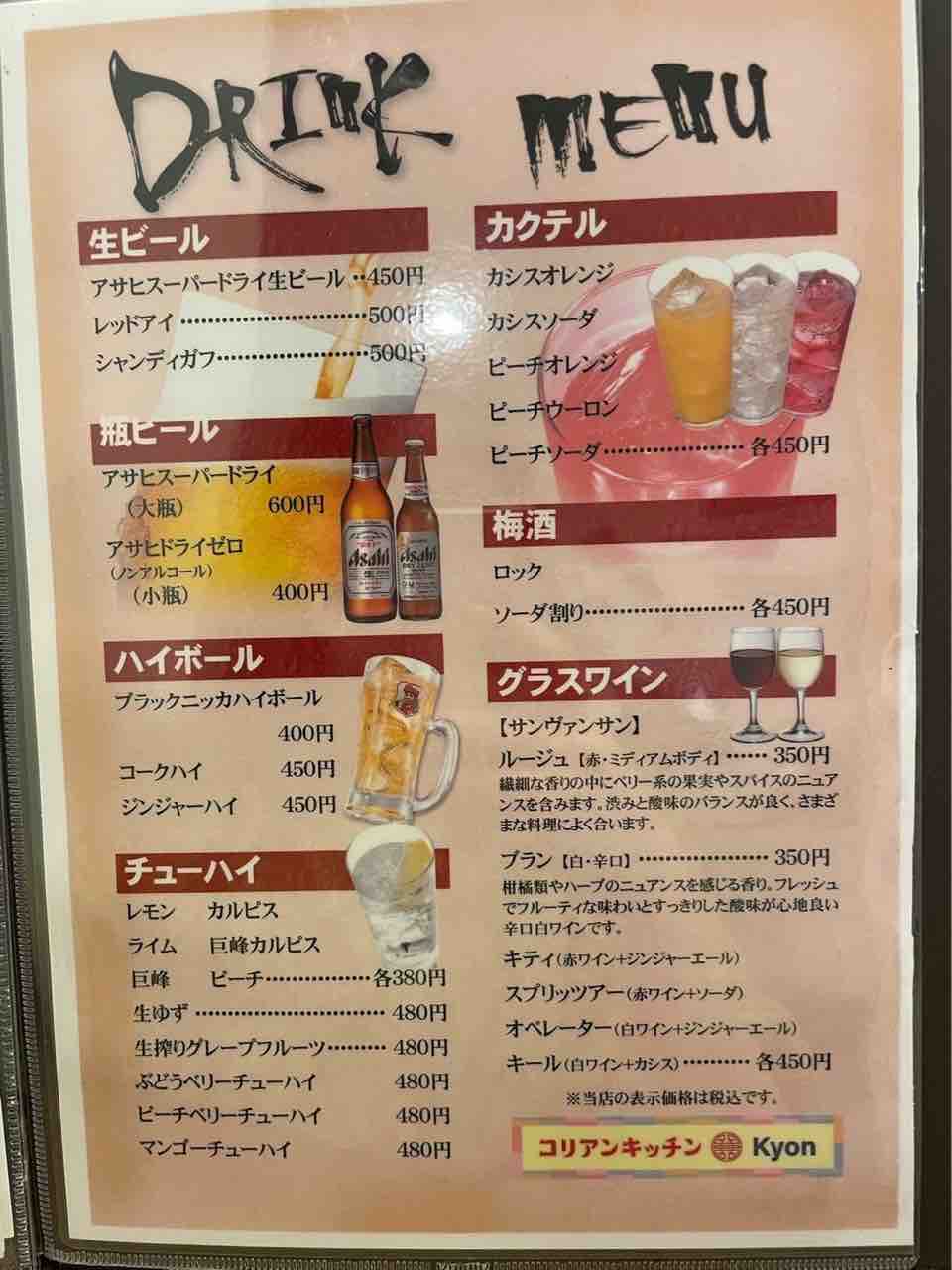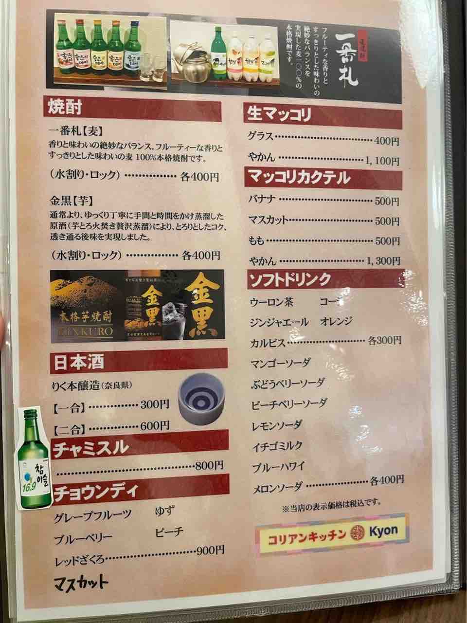 韓国料理になくてはならないチャミスルやマッコリをはじめ、各種アルコール、ソフトドリンクまで揃っているのでお友達とでも、家族とでもかなり来やすいですね。