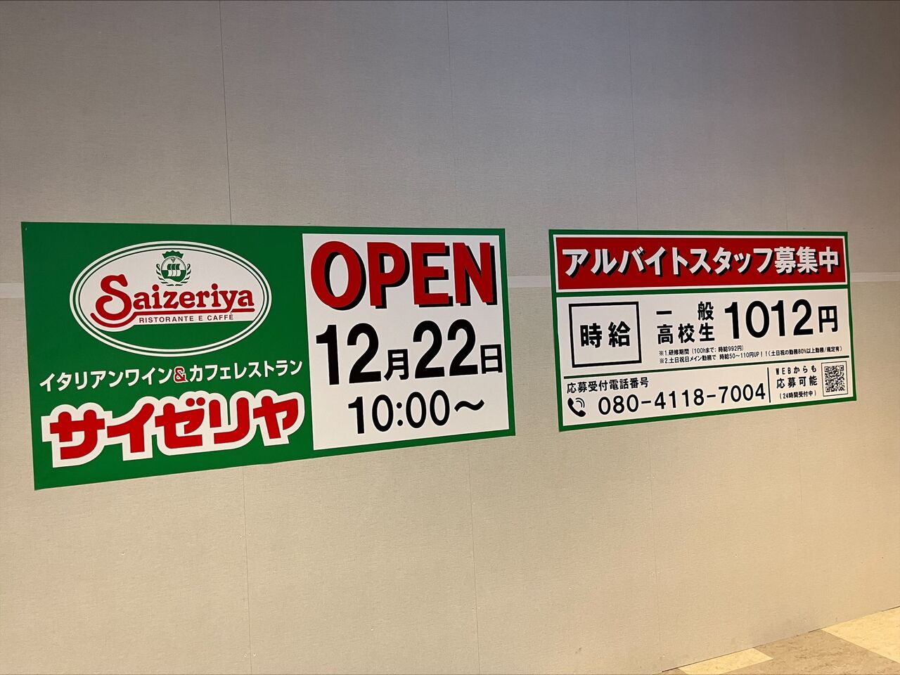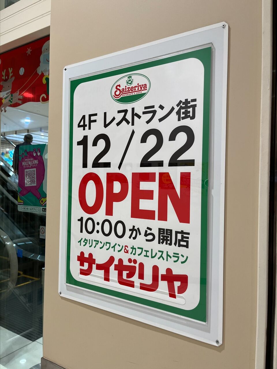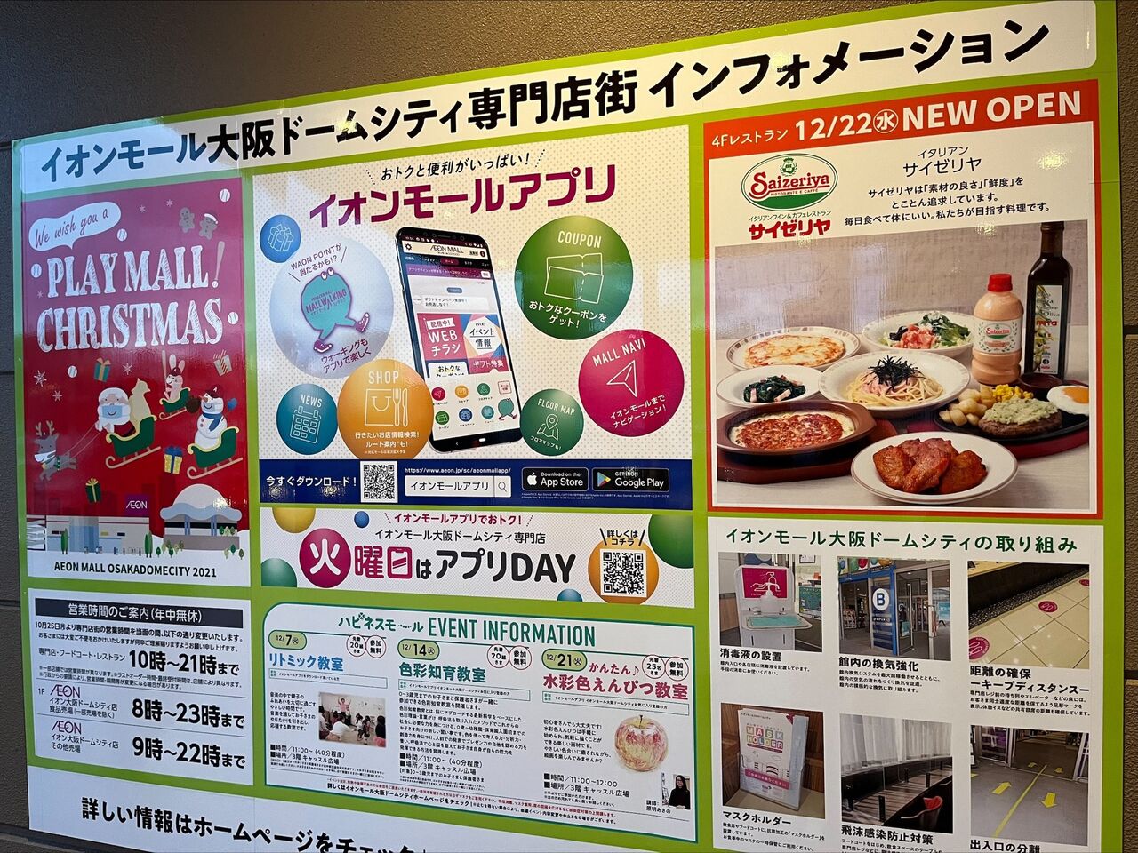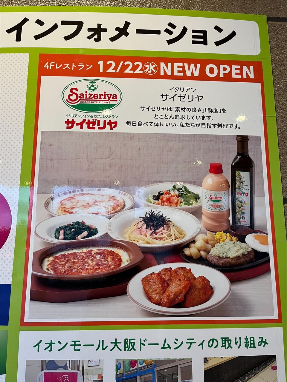 イオンモール大阪ドームシティのインフォメーションにサイゼリヤオープンの案内が!
