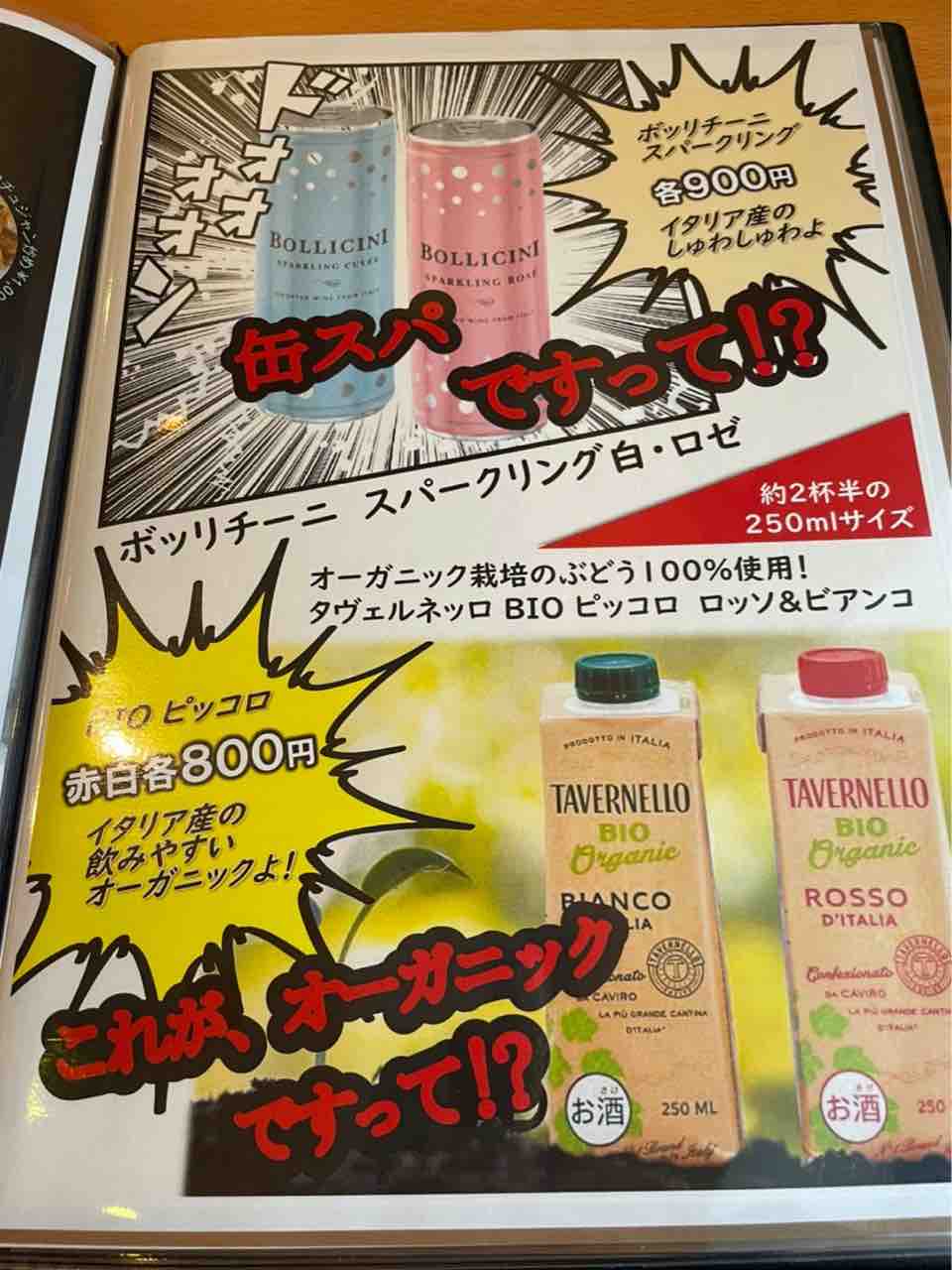 こちらはドリンクメニュー