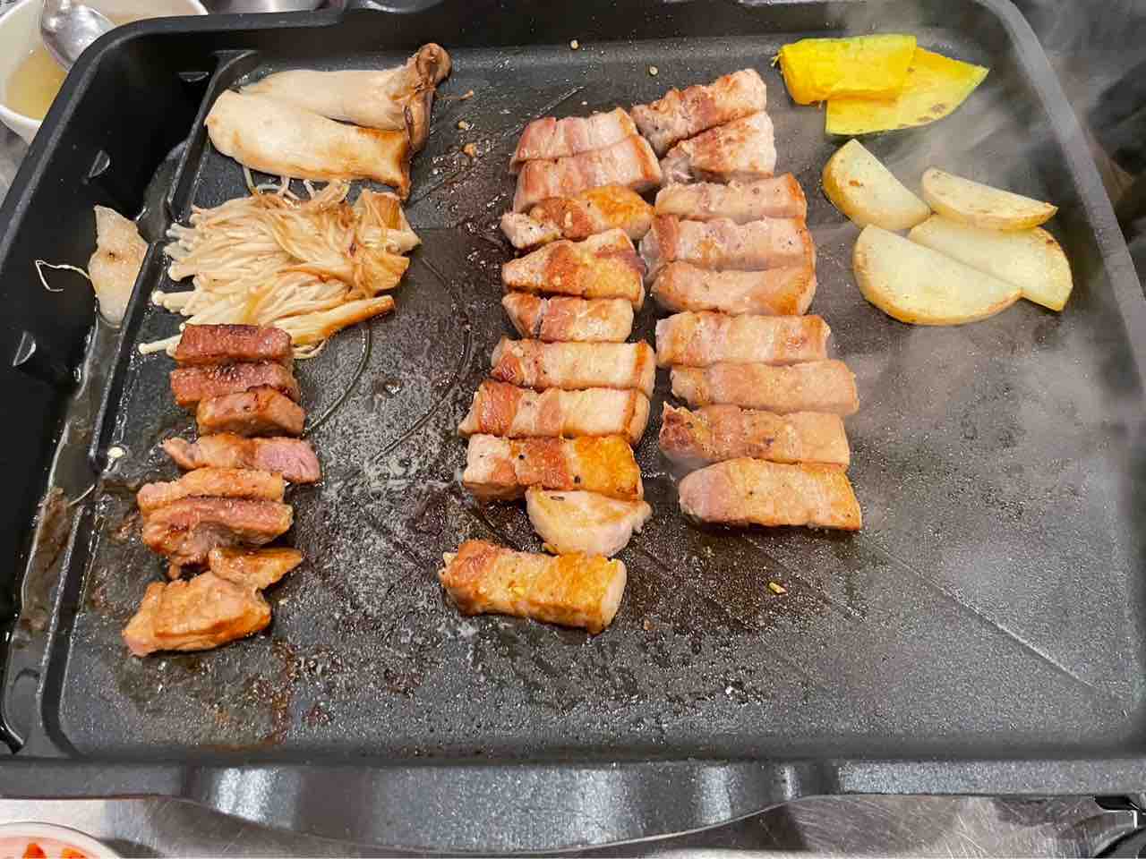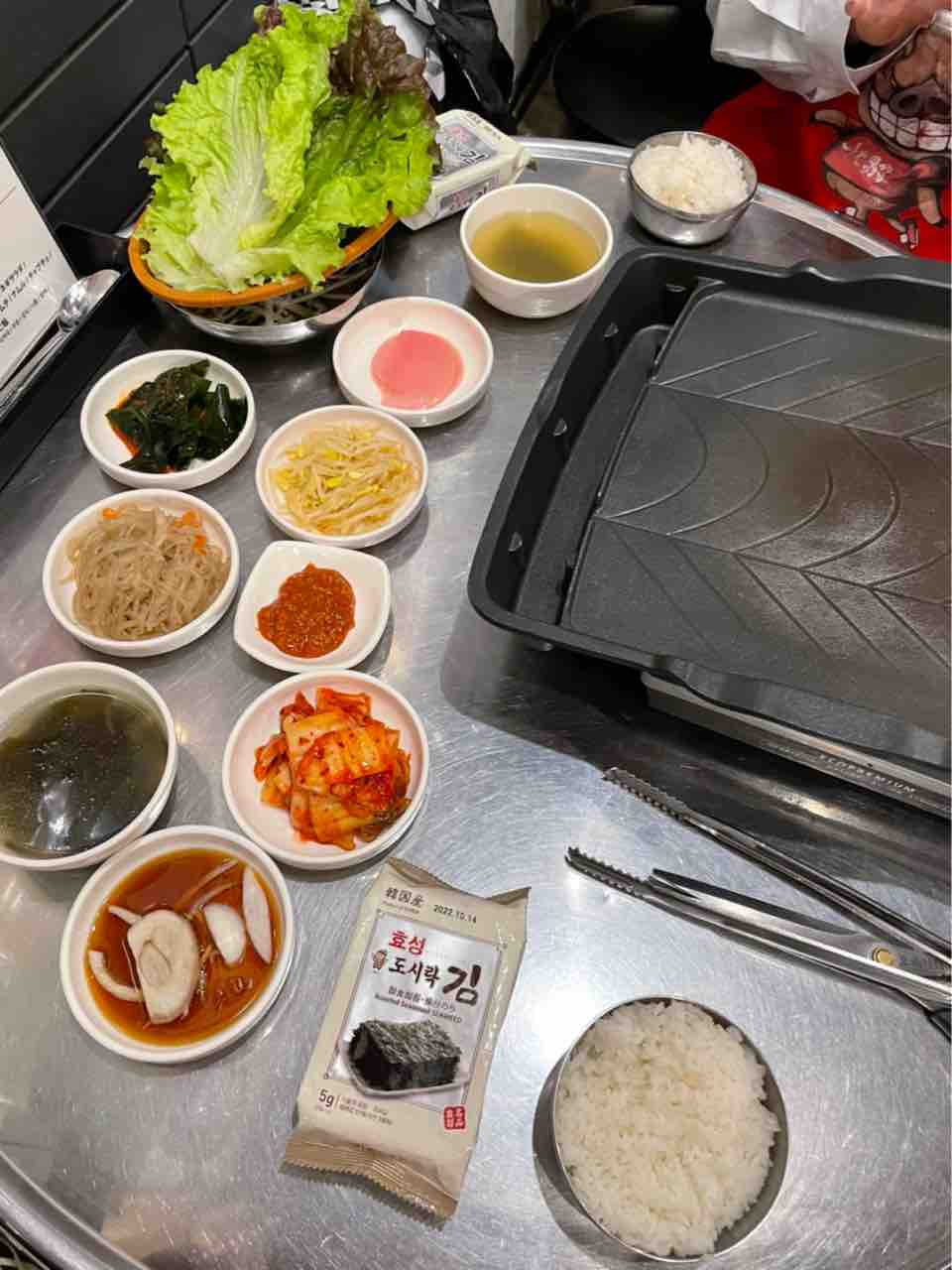 肉厚でサムギョプサルはチシャ菜に包んでタレをつけて食べてもよし、そのまま食べてもよし、ジューシーなお肉におかずの手が止まりません。