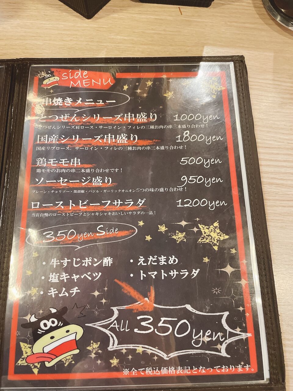 メニュー表はほぼ肉料理!!