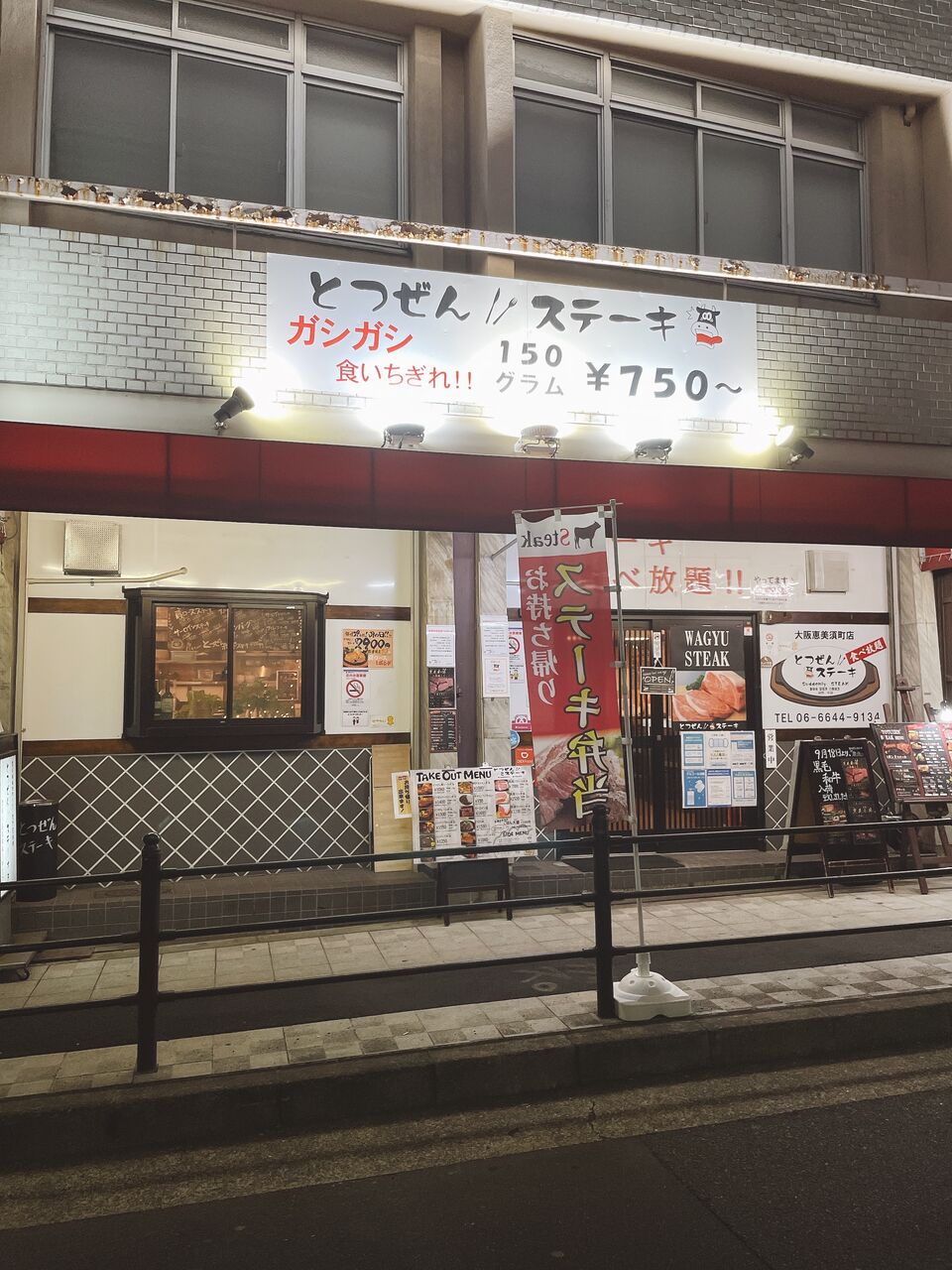 今回ご紹介するのは、地下鉄堺筋線・恵美須町駅から徒歩2分ほど歩いたところにあるステーキ専門レストラン『とつぜんステーキ』さんです。