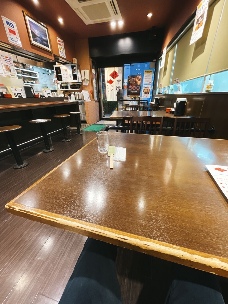 店内は縦長でカウンター席とテーブル席があります。