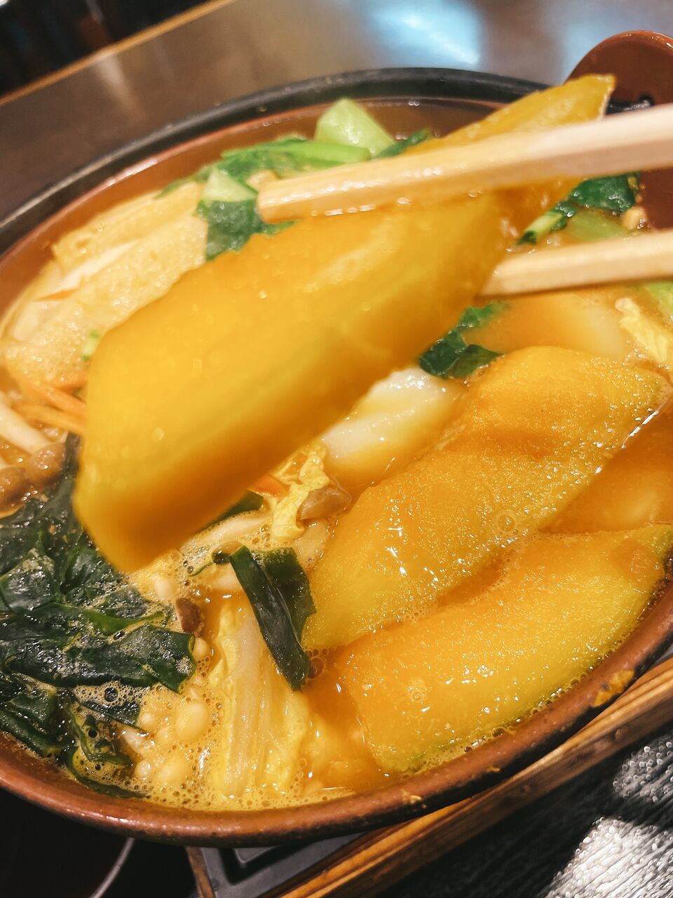 出汁がしっかりと染み込んでおり、カボチャ本来の甘みも残っていたので甘味と出汁の旨味のダブルパンチで美味でした。