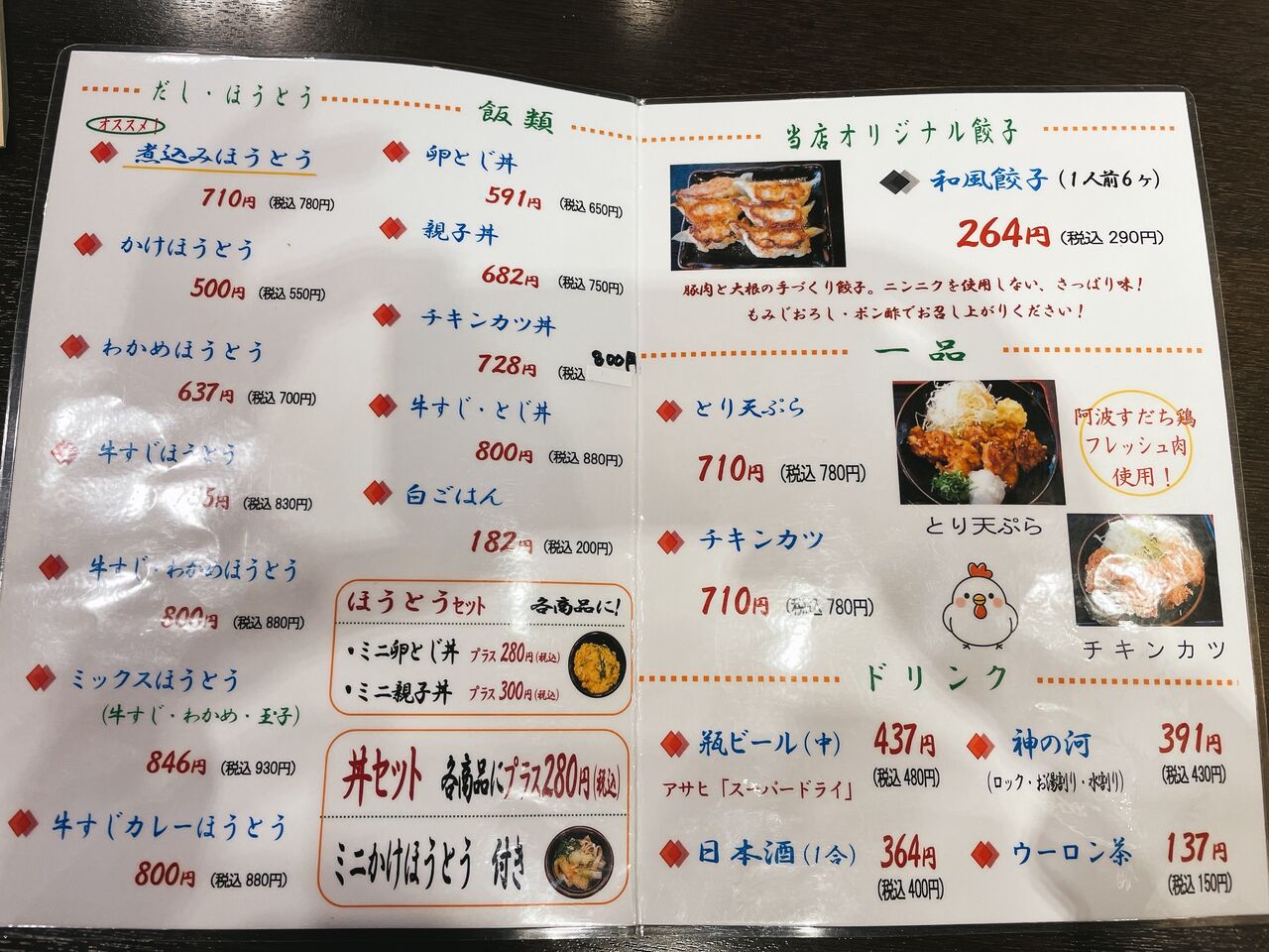 定食や餃子、親子丼など一般的なメニューもあるので食べ慣れている料理の方がいいという方も行きやすいかと思います。