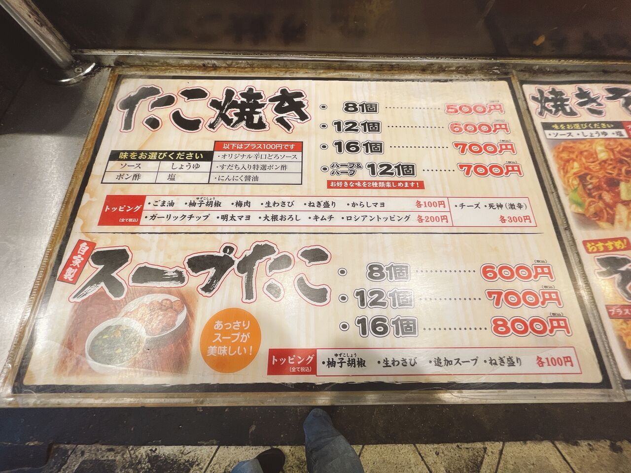 醤油・ソース・塩味とオーソドックスなメニューに加えて個人的にスープたこがすごく気になったのでソース味とスープたこをテイクアウトいたしました。