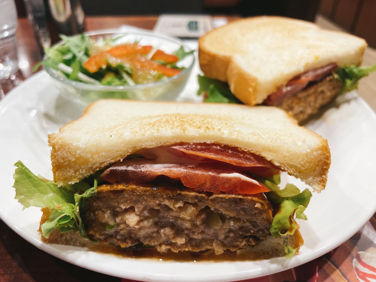 こちらがデミグラスハンバーグサンドとコーヒーです。