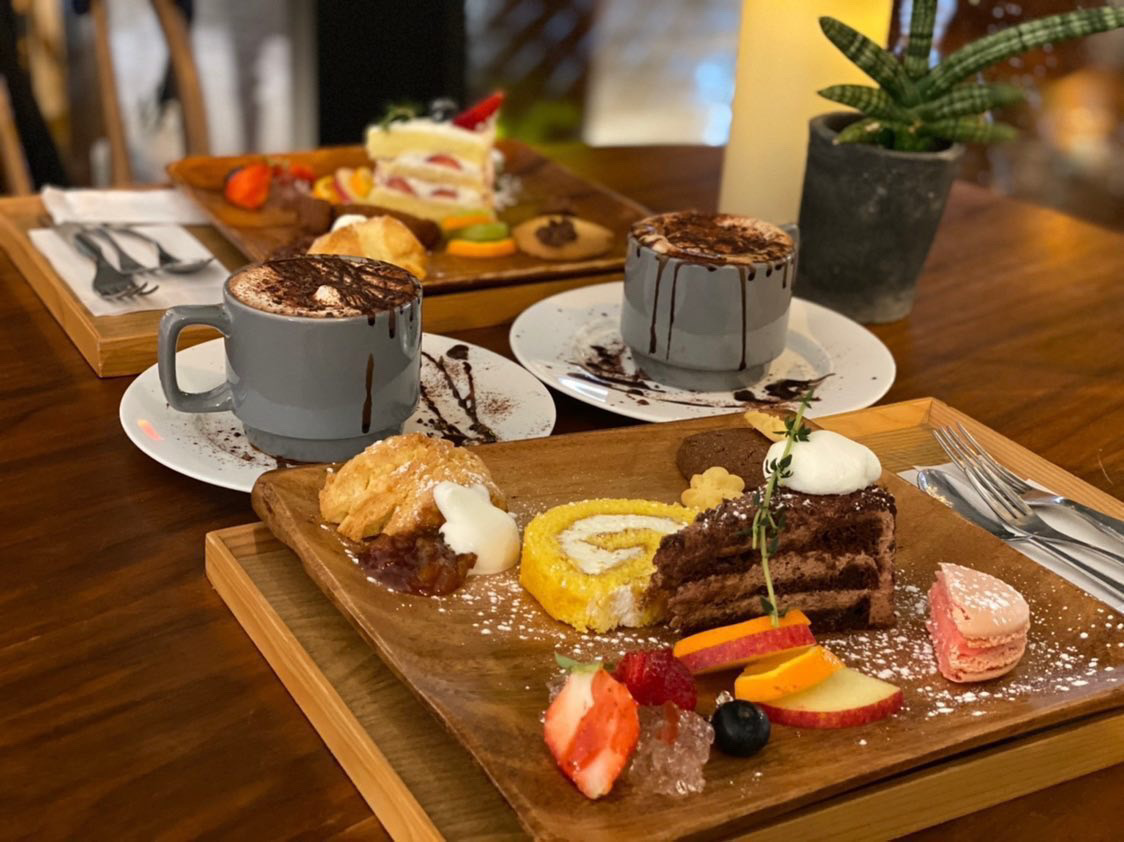 今回は、4月から始まったデザートプレートと限定販売のホットチョコレートをいただきました。