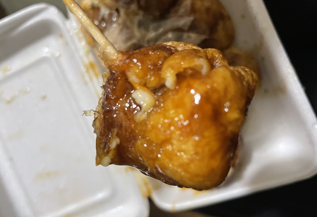 ただ、食べる前の触った感じで分かりますが大阪のたこ焼き特有の生地の弾力・柔らかさがしっかりと伝わってきます。