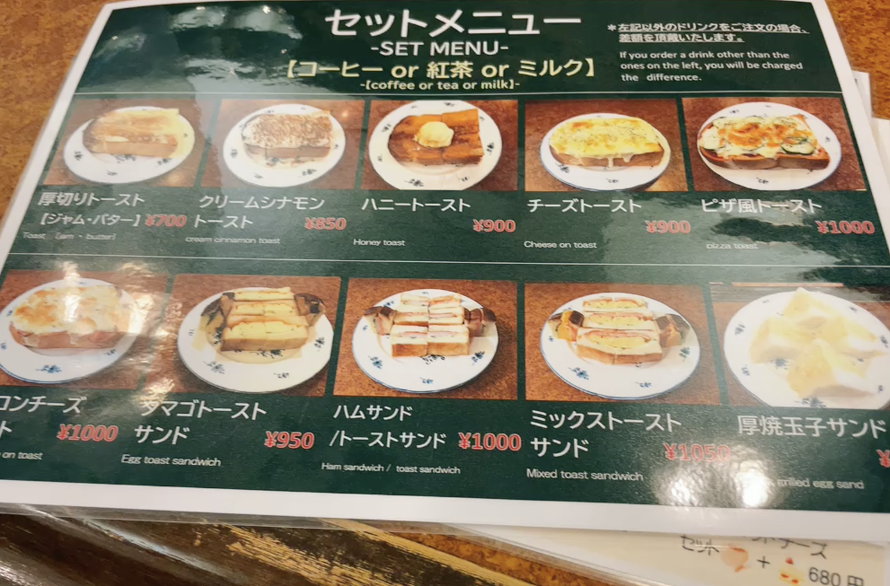 ケーキセットはよくありますがトーストメニューがこれだけ充実しているのは珍しいですね。