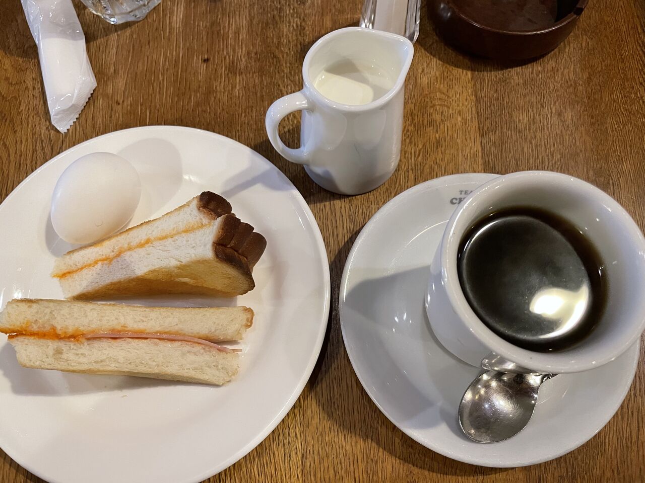 今回注文したのはモーニングサービスのコーヒーとハムトースト・ゆで卵のセット。