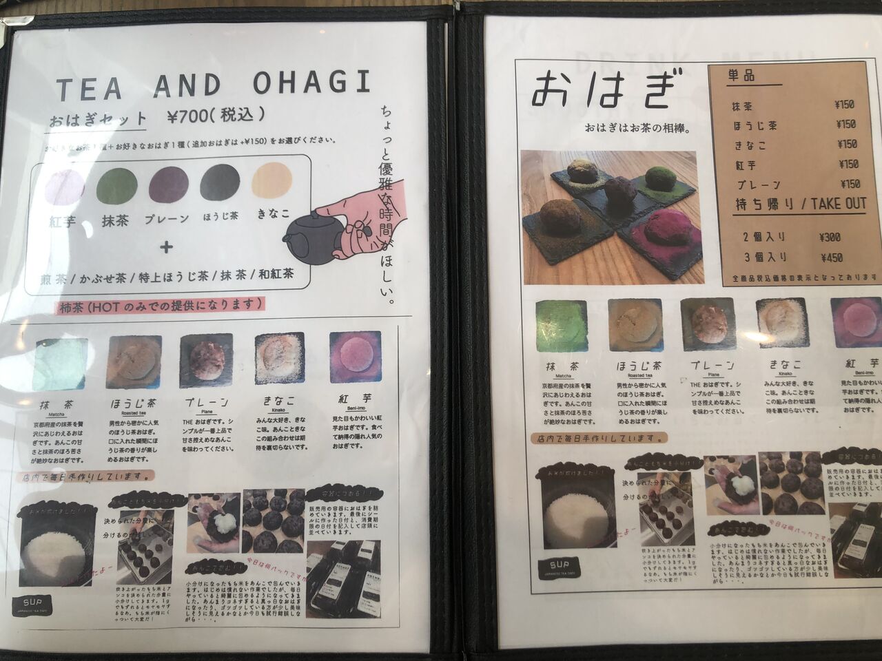 日本茶をメインにしたドリンクや、おはぎやスイーツなどがあります。