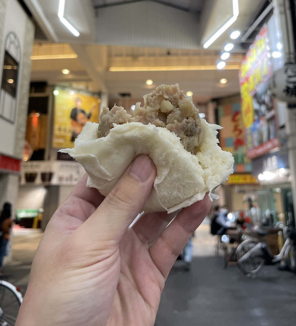 フワフワで柔らか食感の生地と旨味がぎっしりと詰まった豚肉の味が口の中で交差して味も食感も楽しめる逸品。