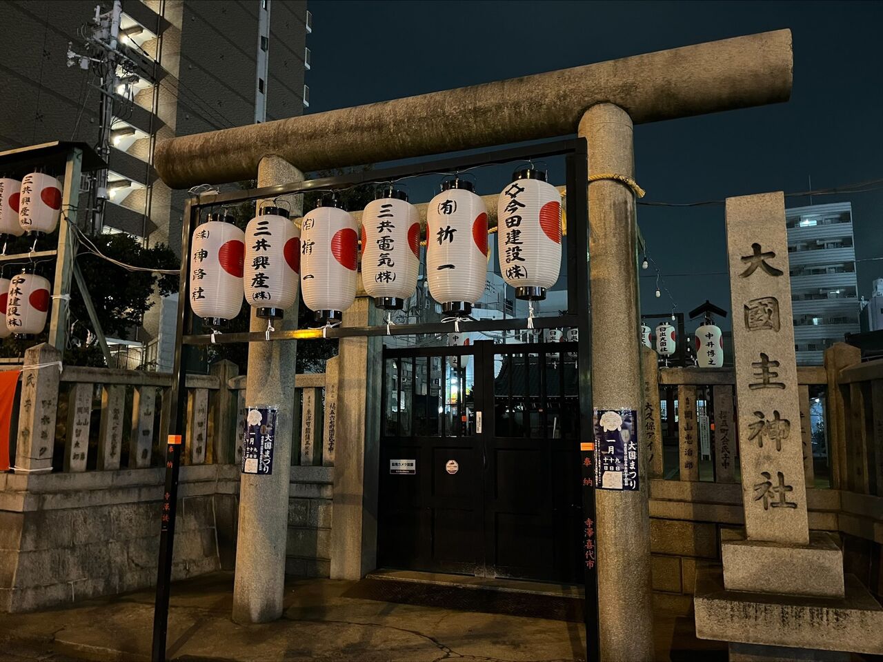 今宮戎神社のえべっさんと合わせてお参りする事でも多く知られている大國主神社(木津の大国さん)