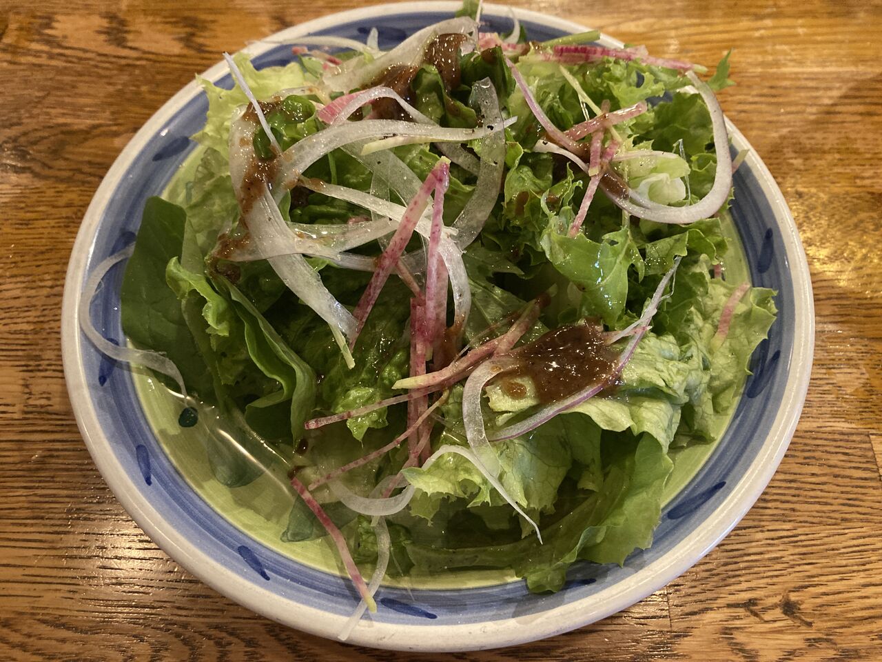ボリュームあるサラダは、少し甘めのドレッシングでもりもり食べ進められる。