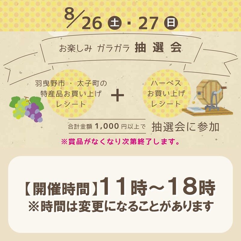 羽曳野市・太子町の特産品を買ったレシートとハーベスの買い物レシートが合計1000円以上になればお楽しみガラガラ抽選会に参加できる!